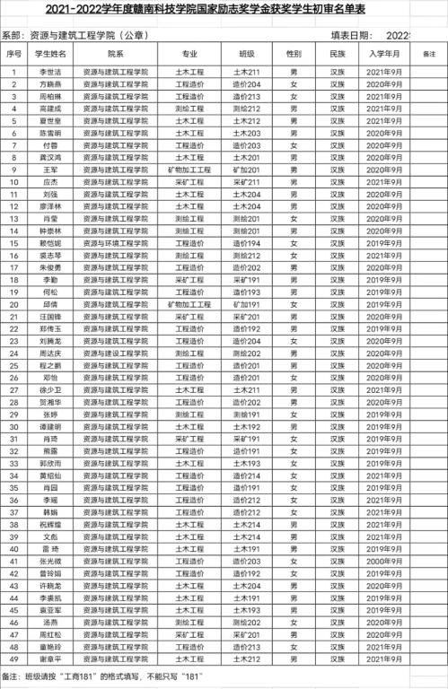 本网讯:资源与建筑工程公司(建设工程系)2021-2022学年国家励志奖学金获奖初审名单公示: