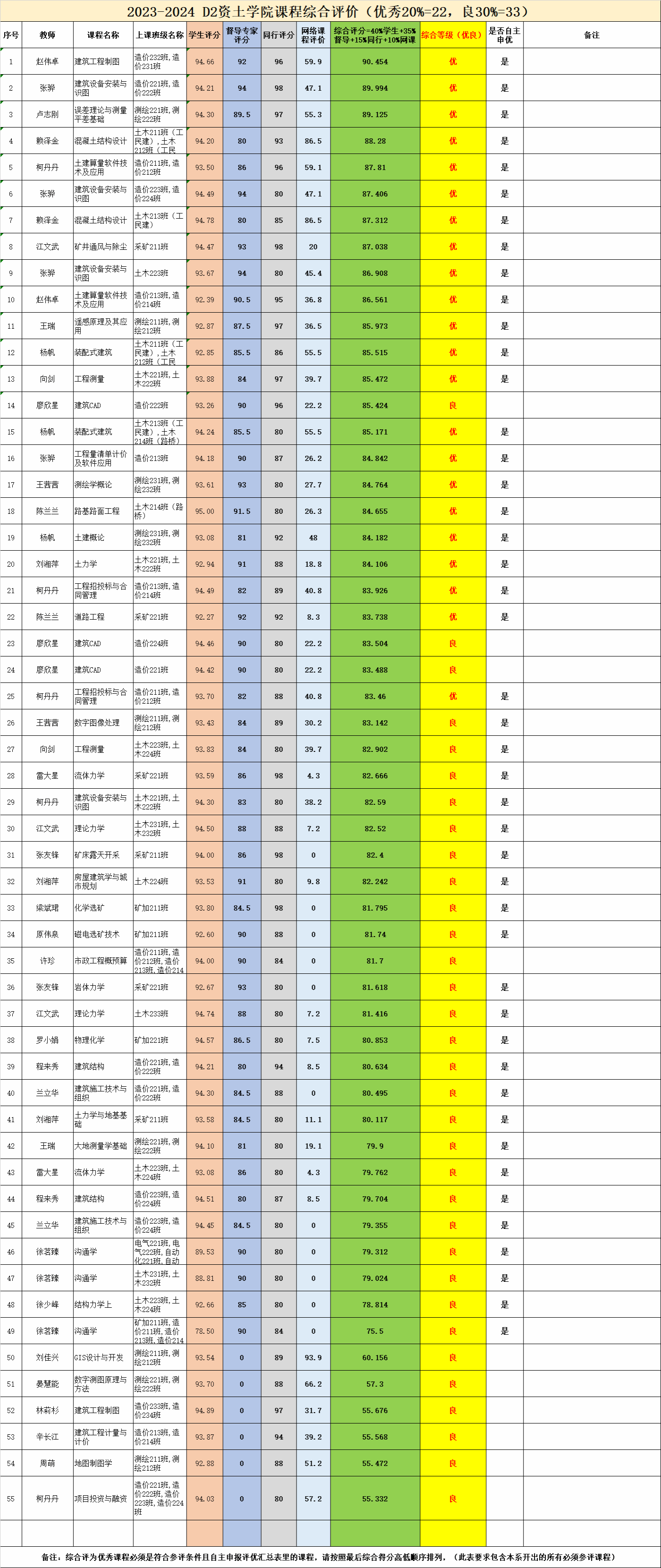 申博sunbet2023-2024第二学期课程教学效果评价优良课程公示