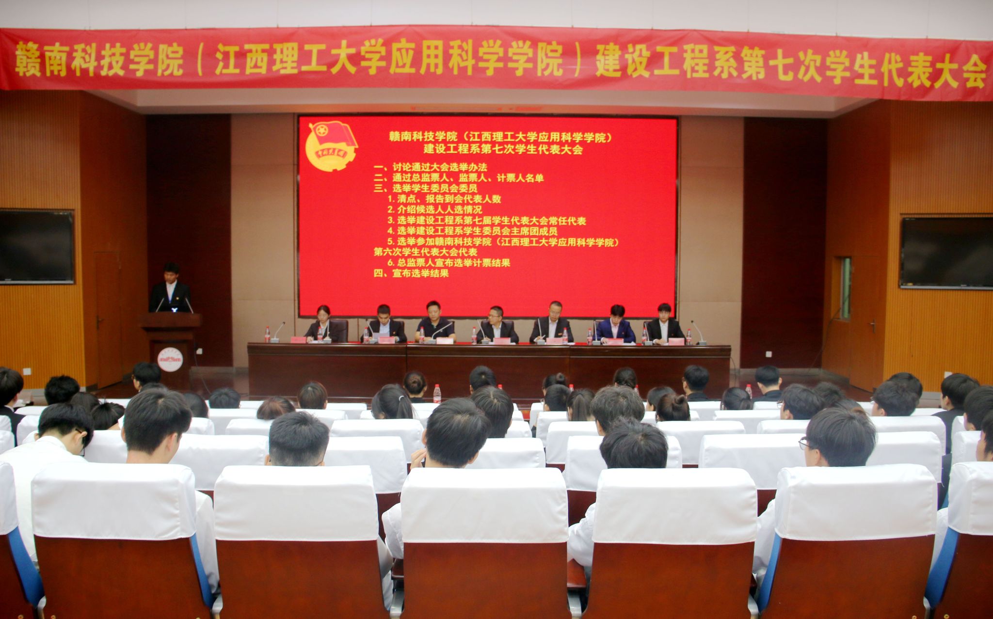 本网讯:10月29日晚,建设工程系第七次员工代表大会在逸夫楼学术报告厅顺利召开,建设工程班子成员卢志刚、涂黎明、代靖怡,团总支书记刘辉以及35名代表出席本次大会。