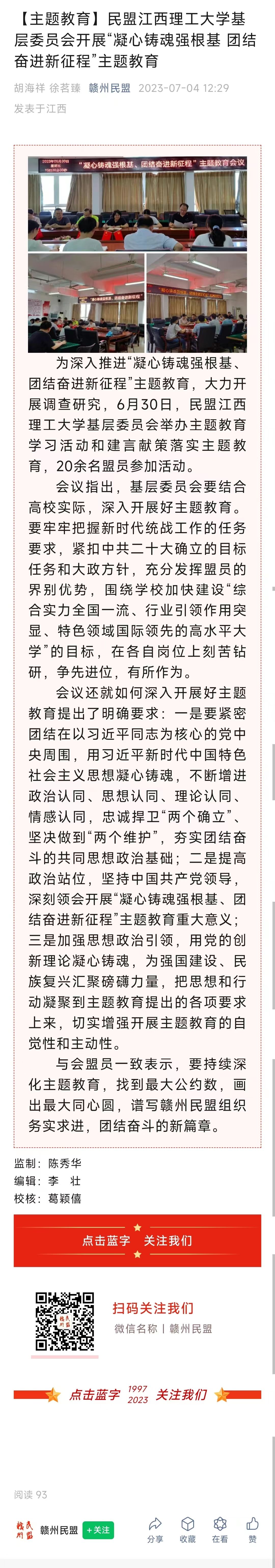 【赣州民盟】民盟江西理工大学基层委员会开展“凝心铸魂强根基 团结奋进新征程”主题教育