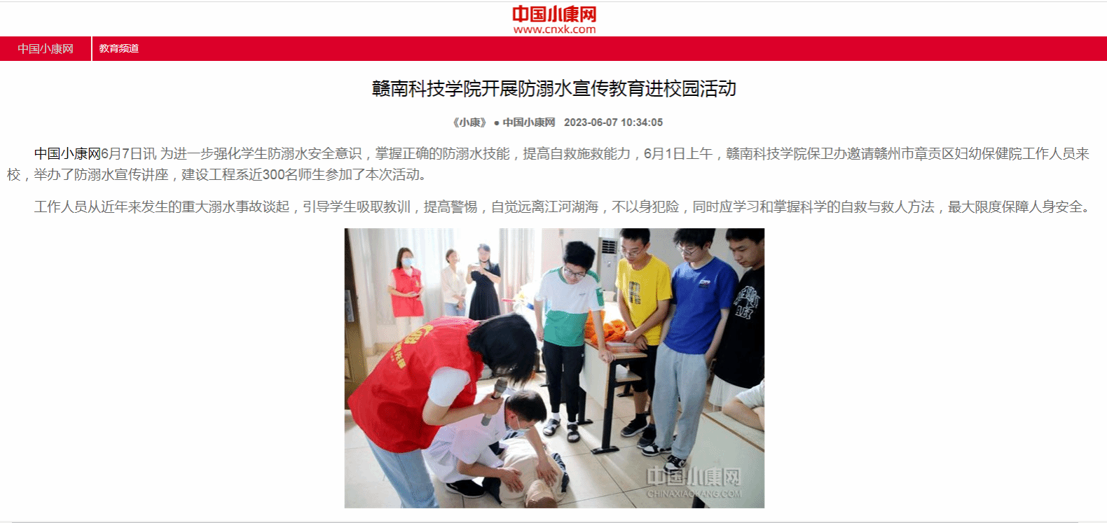 中国小康网6月7日讯:为进一步强化员工防溺水安全意识,掌握正确的防溺水技能,提高自救施救能力,6月1日上午,申博sunbet保卫办邀请赣州市章贡区妇幼保健院工作人员来校,举办了防溺水宣传讲座,建设工程系近300名师生参加了本次活动。