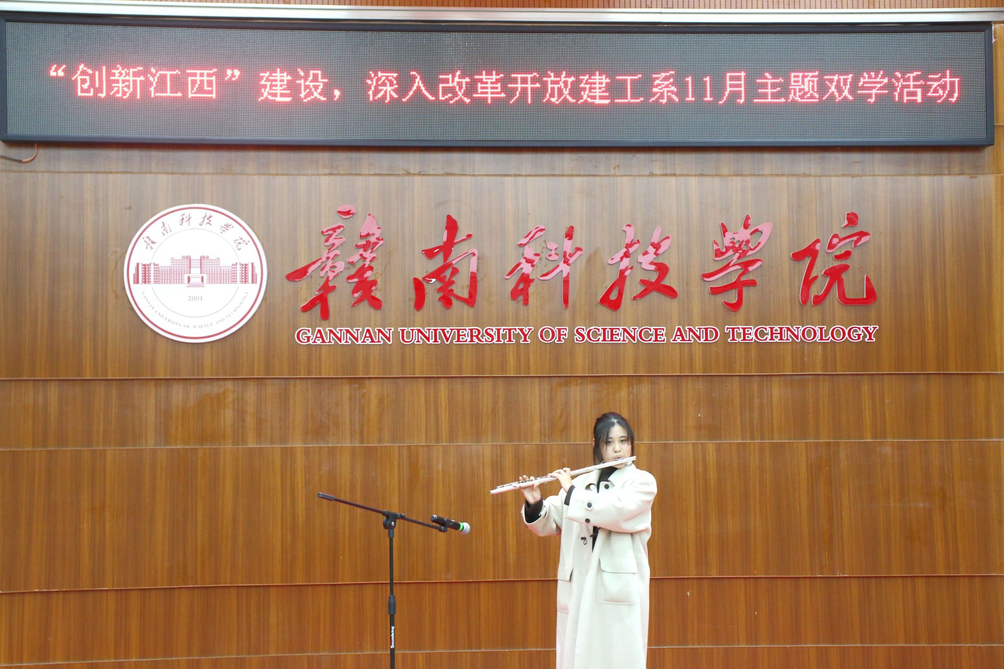 本网讯:11月27日晚,建设工程系在图书馆学术报告厅举行以“创新江西建设,深入改革开放”为主题的双学活动,建设工程系师生近三百人参与本次活动。
