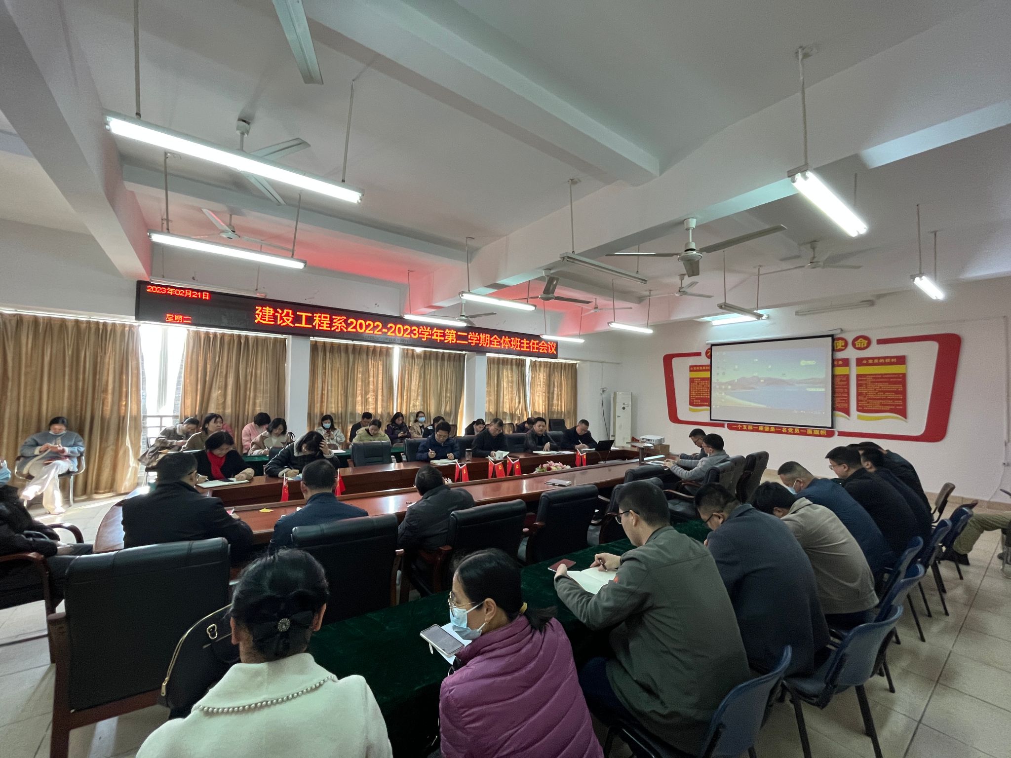 本网讯:为进一步从严从实做好教育管理工作,筑牢员工安全防范意识,提高员工心理健康水平,建设工程系于2月21日在主教Z713召开2022-2023学年第二学期全体班主任会议,建设工程系全体班主任参加本次会议。
