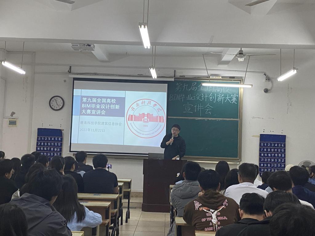 本网讯:为了更好地发展新兴技术,加快建筑行业数字化人才培养,将行业新技术、新需求与传统教学更好的融合,提高老员工对数字建筑的认知。11月22日晚,建筑信息协会于主教Z102召开第九届全国高校BIM毕业设计创新大赛宣讲会。会议由指导老师赵伟卓、柯丹丹主持。