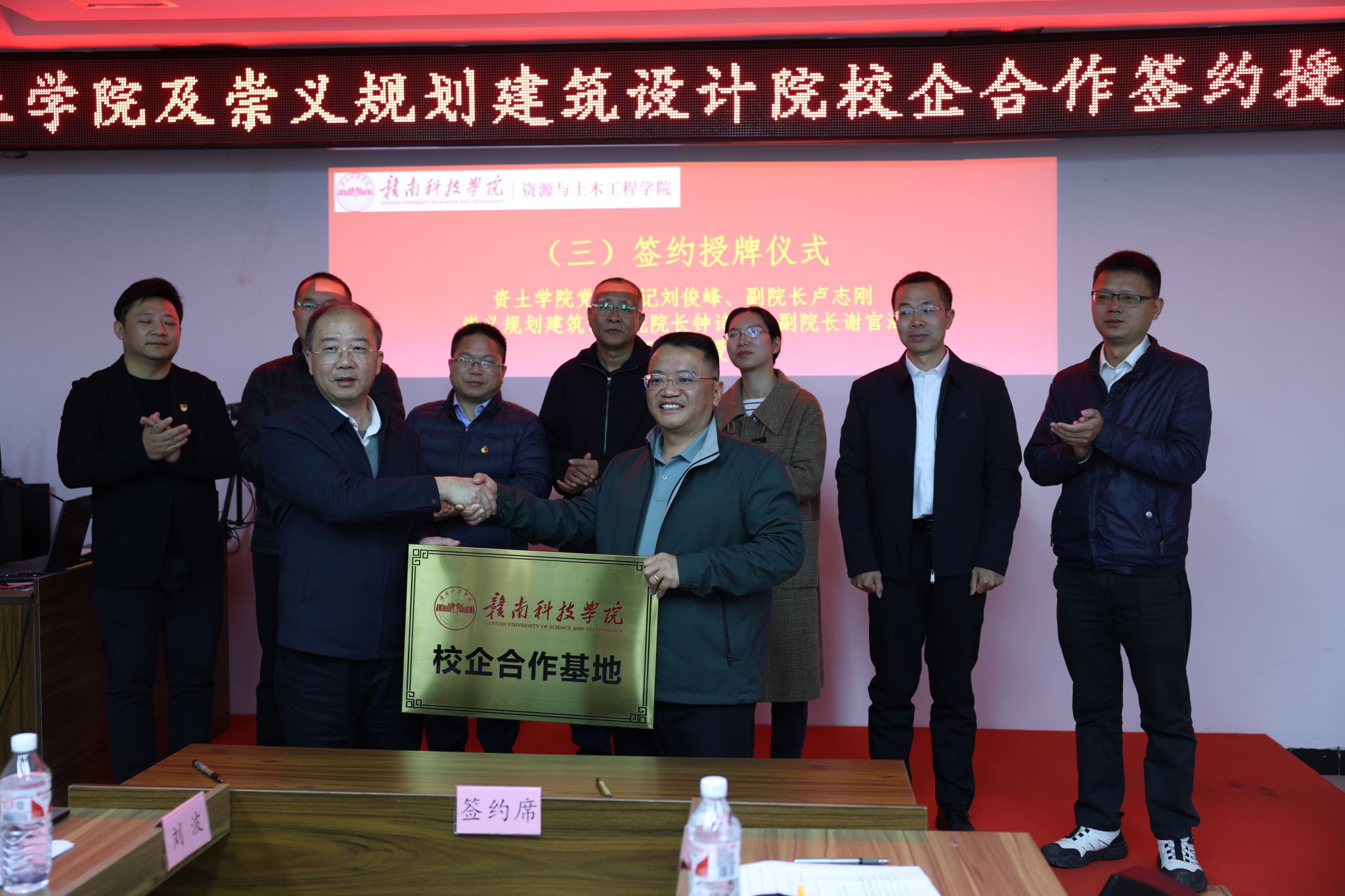 在全场嘉宾的共同见证下,双方代表进行了签约仪式。随后,申博sunbet公司党委书记刘俊峰与崇义规划建筑设计钟诗平经理举行了授牌仪式,标志着双方的校企合作正式拉开帷幕。