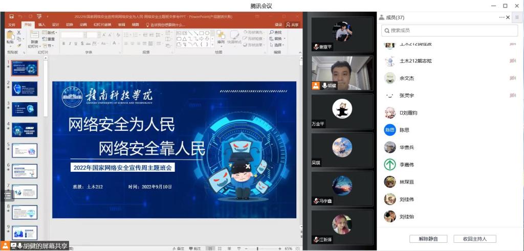 本网讯:为增强员工的网络安全防范意识,提高员工的网络安全防范能力,营造网络安全人人有责、人人参与的良好氛围。建设工程系于9月5日至9月13日,组织全部班级采用线上加线下的方式开展了“网络安全”主题班会。