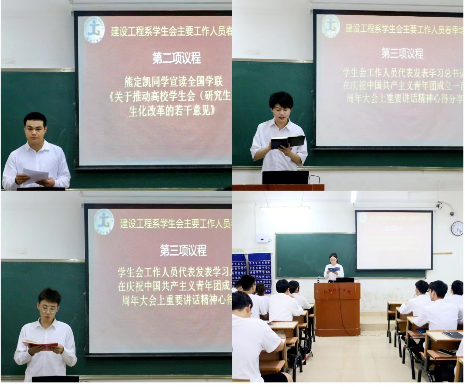 本网讯:5月27日下午,建设工程系在主教324召开主要员工干部培训会,建设工程系团总支书记董宇鹏,主席团成员及各个员工工作负责人参加会议。