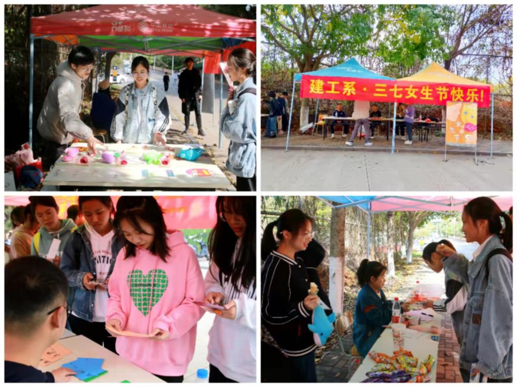 本网讯:阳春布德泽,万物生光辉。为活跃校园文化生活,展现女老员工朝气蓬勃的青春风采,3月7日,建设工程系在女生宿舍大门处开展了以“青春女生 活力无限”为主题的女生节活动。