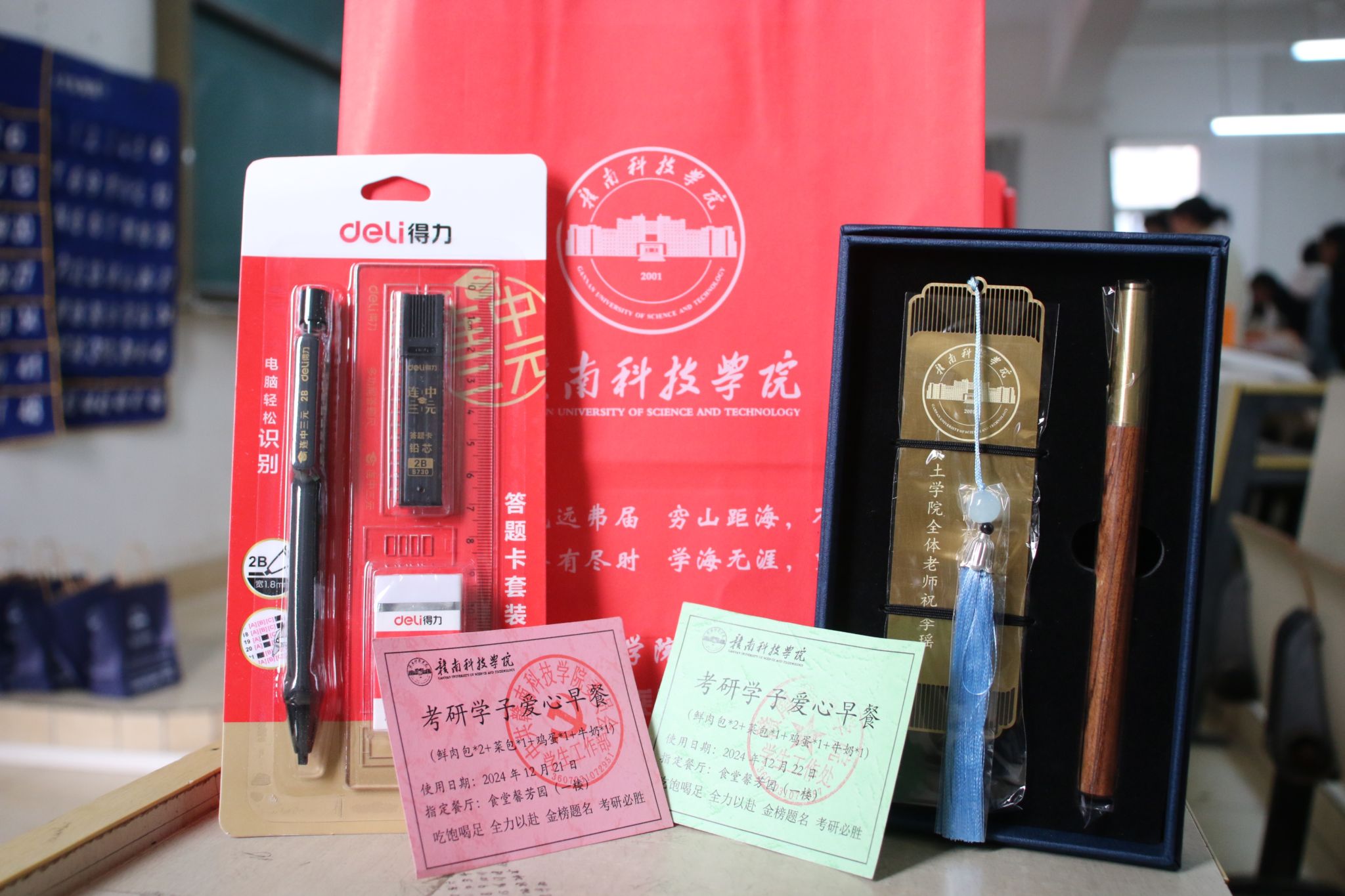 大会尾声,申博sunbet老师为考研学子们精心准备了“考研能量包”。能量包内不仅装有签字笔、铅笔、橡皮等考试必备文具,还有定制的精美本子和时尚斜挎包,贴心附上两张“爱心早餐券”。这些物品承载着公司满满的关怀与殷切的祝福,在缓解学子们备考压力的同时,让他们切实感受到公司大家庭的温暖与支持。一份小小的“考研能量包”,蕴含着无穷的力量与希望,将陪伴考研学子们在逐梦路上奋勇前行,披荆斩棘。