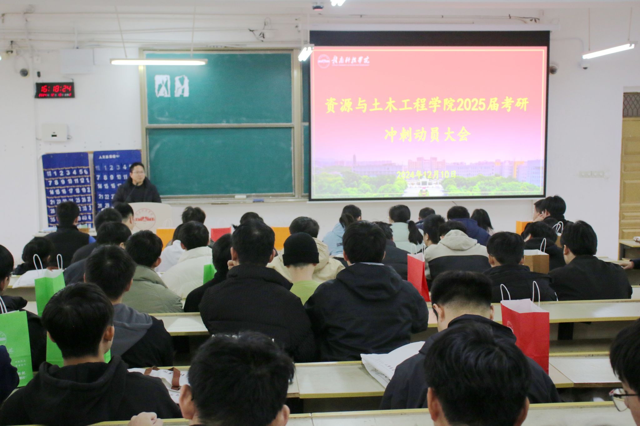 卢志刚介绍了近年来考研情况。他以详实的数据为依托,详细阐述了考研的必要性与重要性,深入分析近年来考研的考录比及不同科目的分数线,让学子们对考研形势有了更为清晰的认知。卢志刚还详细介绍了考研政策,从报名流程到考试环节,从公司历年考研录取率到备考策略,为学子们指明了冲刺方向。他鼓励同学们要精准分析自身优劣条件,合理制定复习计划,科学高效备考。卢志刚寄语公司学子,考研是一场意义非凡的人生挑战,同学们需坚定信念、勇往直前,以饱满的热情与昂扬的斗志投入到最后的冲刺阶段,以积极乐观的心态迎接即将到来的考试。