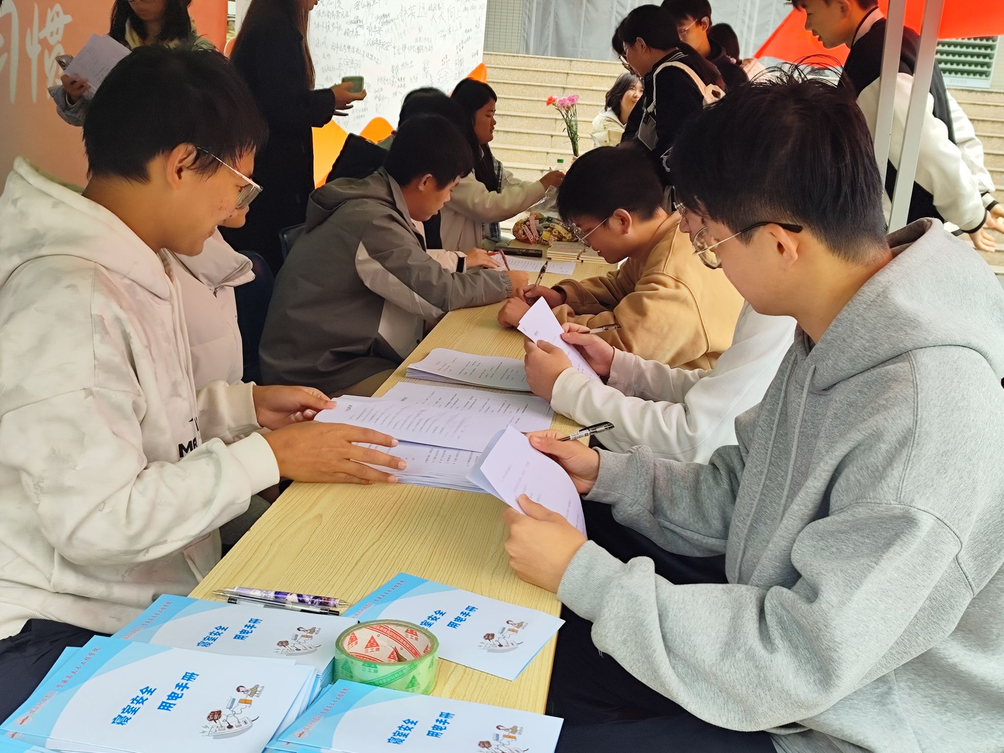 活动现场,工作人员向同学们分发寝室用电安全手册,宣传寝室用电安全知识。同学们随机抽取一组题目进行作答,答对相应题数的同学有机会得到公仔、钥匙扣、笔记本、黑字笔等奖品。前五十名来答题的同学附赠康乃馨一支。活动期间,同学们踊跃参与答题,气氛活跃,在申博sunbet宿管部和员工部的共同努力下,本次活动取得圆满成功。