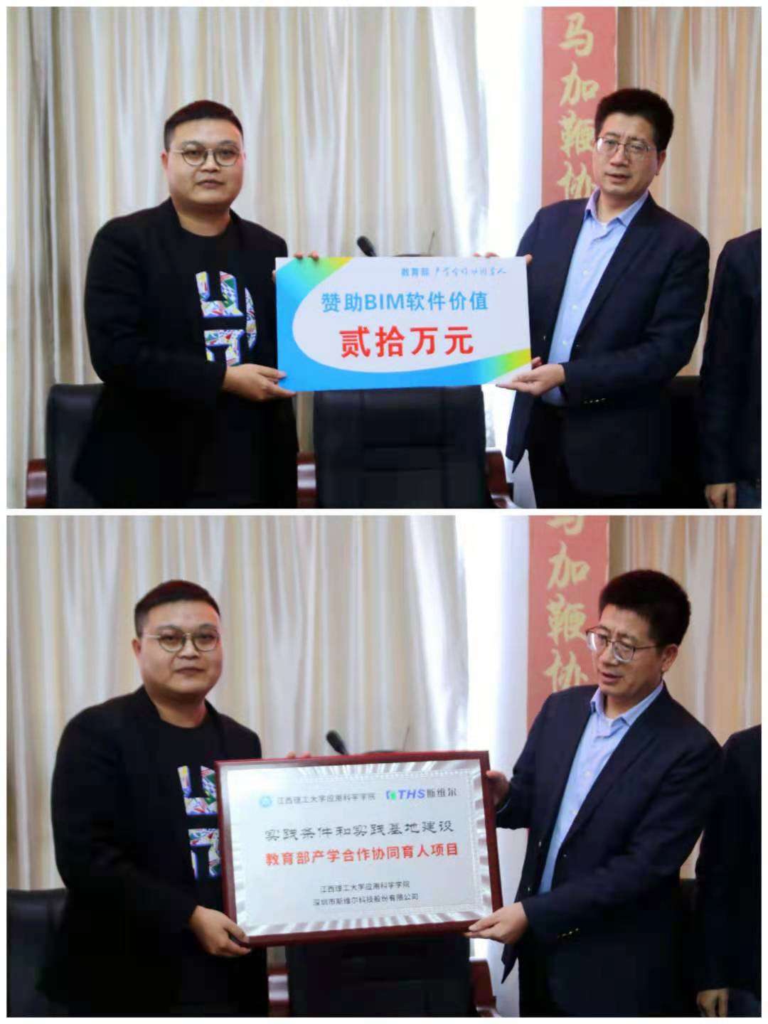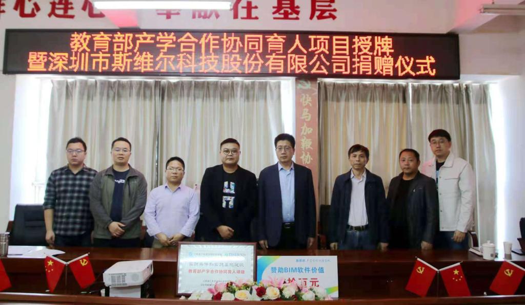 代靖怡介绍了教育部产学研协同育人项目的重要意义,向斯维尔科技有限公司对系部教学实践提供的支持和帮助表示感谢。捐赠仪式由三部分组成,首先付玉华和饶英凯对产学合作协同育人项目进行了授牌,随后深圳市斯维尔科技股份有限公司江西区域经理饶英凯代表企业向建设工程系捐赠了价值20万元的BIM软件,最后卢志刚和饶英凯进行校企合作签约,活动的开展不仅是校企合作的重要见证,更是企业对公司工作的肯定与支持。