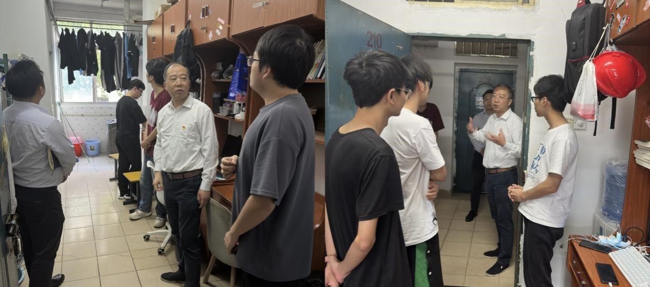 首先,刘俊峰一行走访了 “三联系” 班级员工宿舍。在走访过程中,刘俊峰仔细检查宿舍安全卫生情况,与同学们亲切交谈,深入了解他们的学习生活状况与实际需求。他叮嘱同学们要养成良好生活习惯,营造整洁、温馨的宿舍环境;鼓励大家保持积极心态,合理规划时间,平衡好学习与生活。