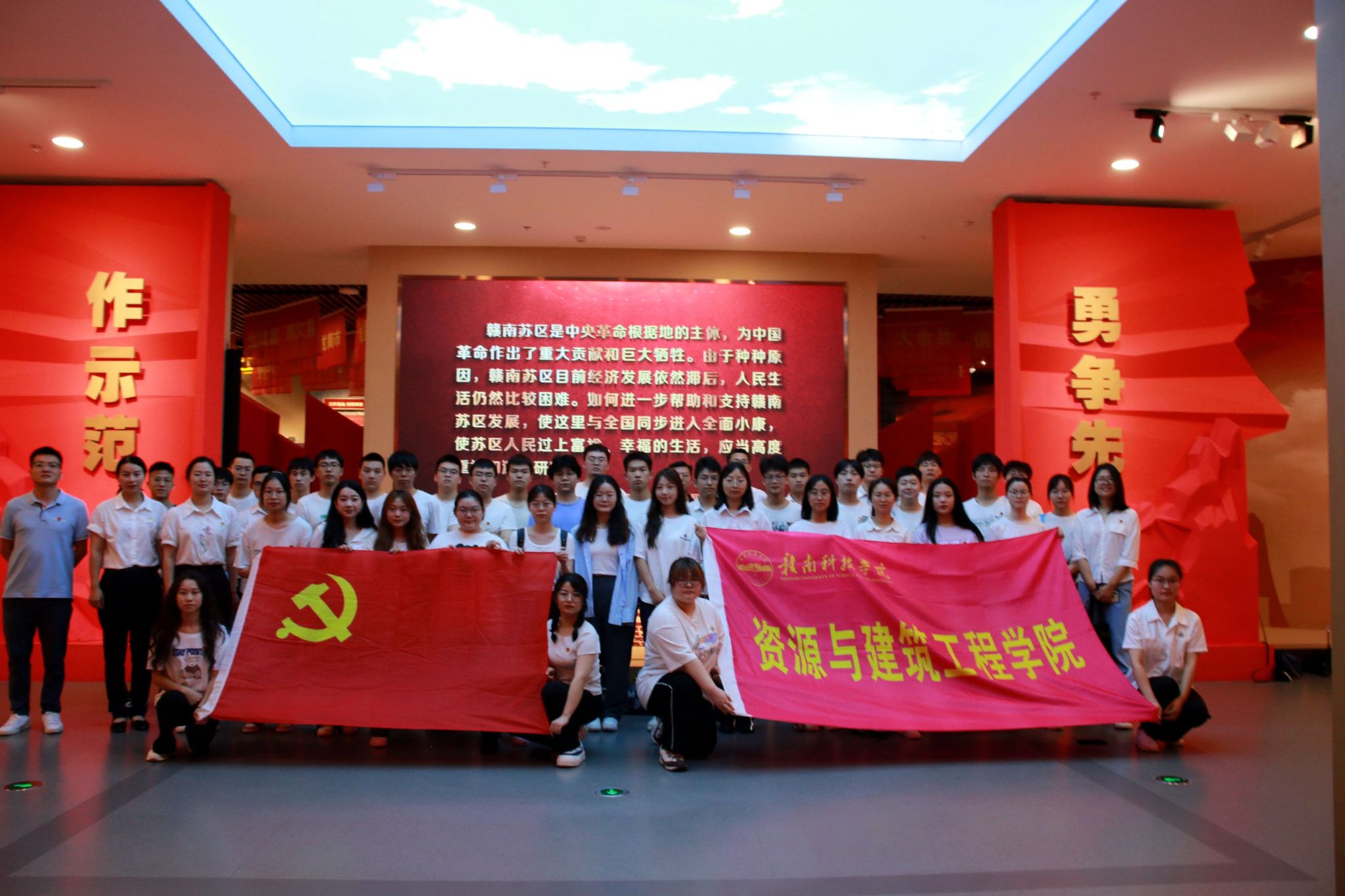 本网讯;6月14日上午,建设工程系组织毕业生党员在赣州市博物馆(新馆)组织开展“牢记时代使命,书写人生华章”主题红色研学活动。建设工程系本科生第一党支部书记刘惠文、本科生第二党支部书记徐新木带领2019级毕业生党员参加本次活动。