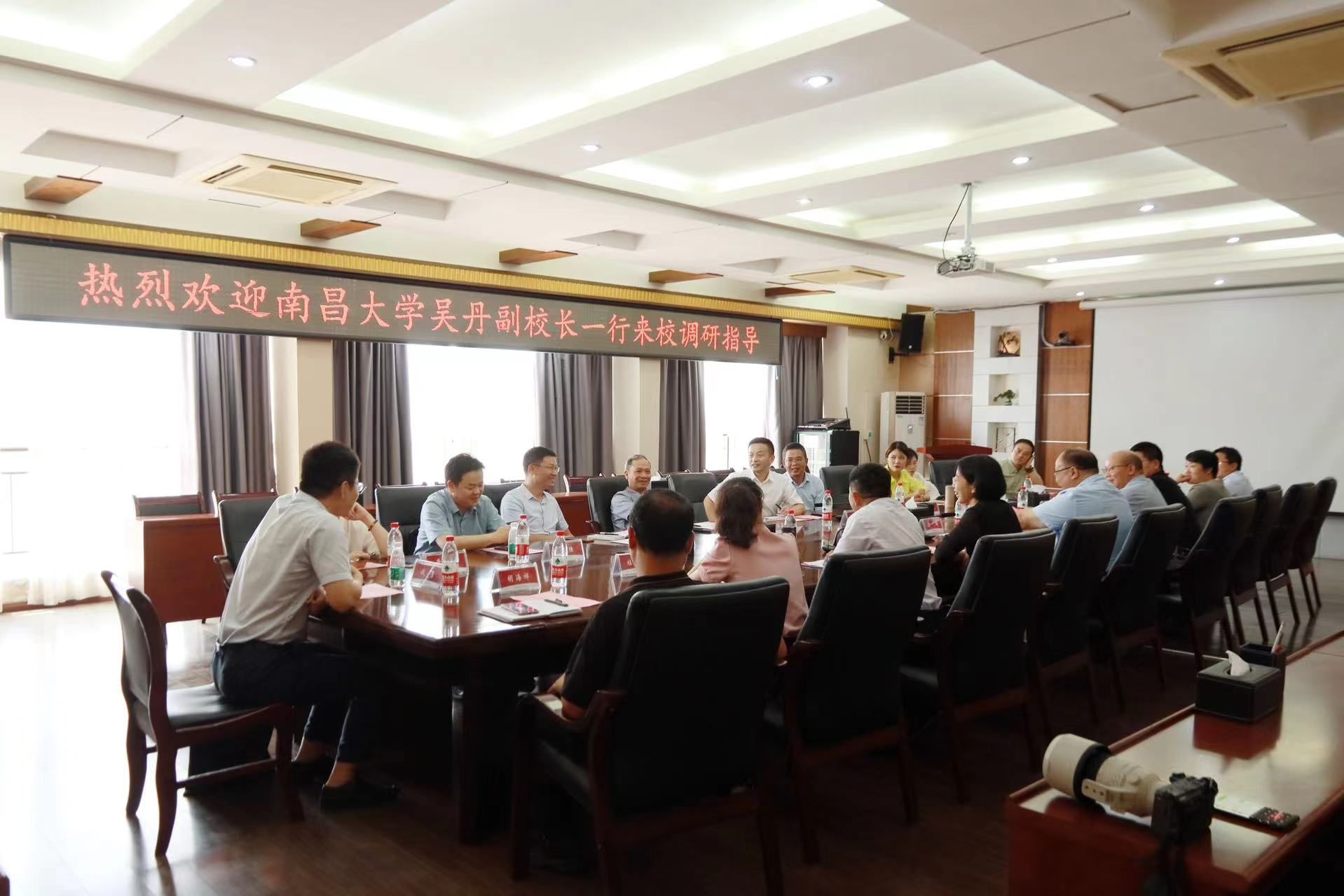 本网讯:8月17日上午,南昌大学副董事长吴丹一行来校调研指导,参观公司食品科学与工程专业实验室建设情况,并于崇善楼第一会议室召开座谈会。公司党委委员、副董事长左群,赣州市委教育工委委员、市教育局副局长赖晓琴,公司过渡期管理委员会常务副主任何锦龙、副主任邓亦林、委员付玉华,教育局及公司相关部门负责人参加座谈交流。座谈会由左群主持。