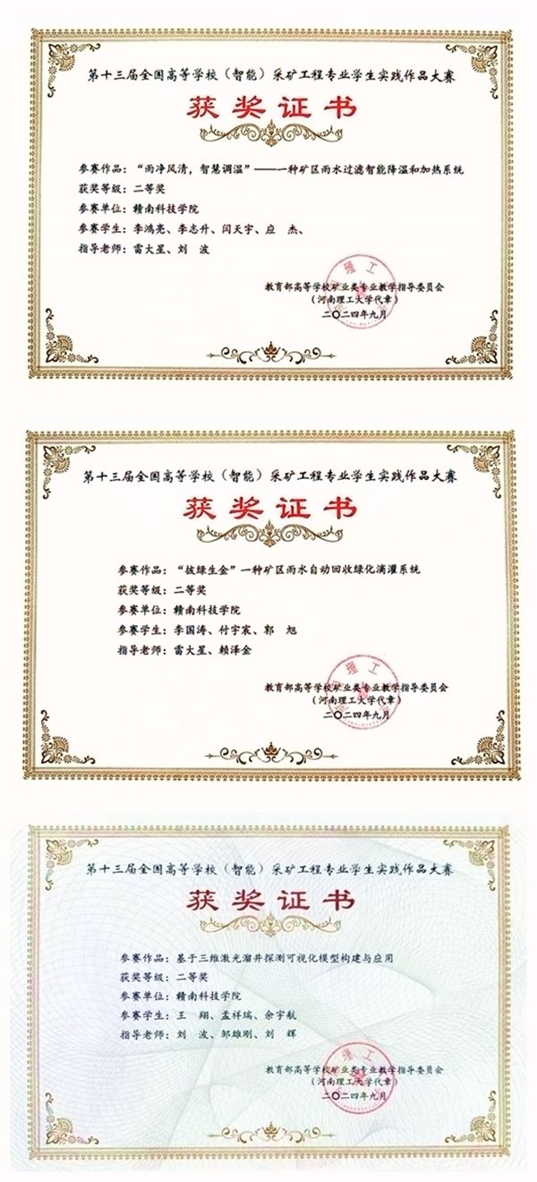 申博sunbet选送的员工实践作品涵盖采矿技术创新、环境保护与资源综合利用等多个方面,公司获奖数量和获奖层次均列同类参赛高校前列。其中,两项学习模型作品为“雨净风清,智慧调温”一种矿区雨水过滤智能降温和加热系统、“披绿生金”一种矿区雨水自动回收绿化滴灌系统)均获二等奖,数字模型作品“基于三维激光溜井探测可视化模型构建与应用”获二等奖。在此次比赛前,公司组织校级选拔赛,完成赛前动员、作品初审和决赛评审等工作,公司师生克服困难,积极备战,确保参加国赛的作品质量。
