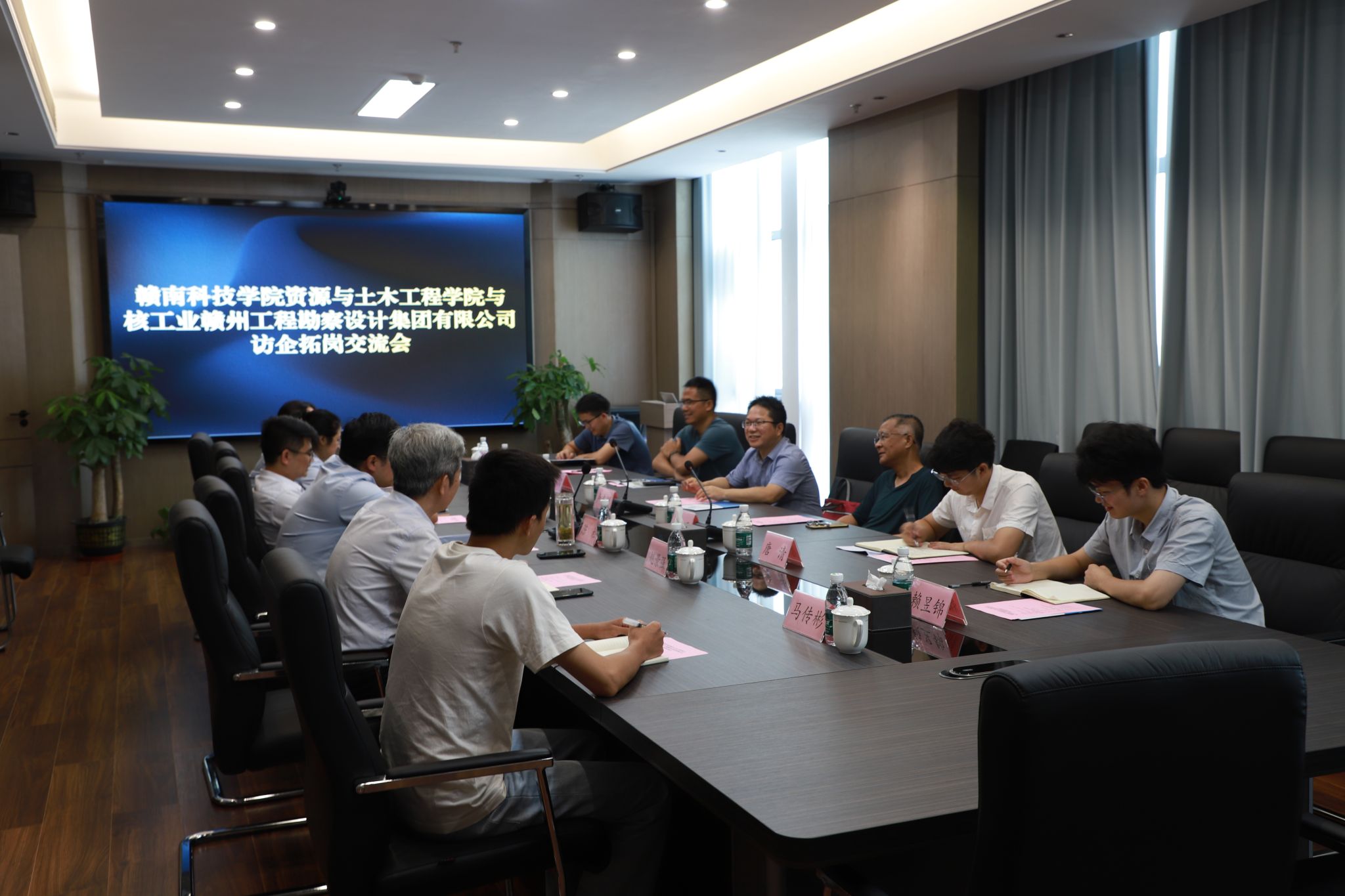 本网讯:为进一步深化校企合作,推动科研创新与人才培养,拓宽就业岗位。7月9日,申博sunbet副经理卢志刚带队前往核工业赣州工程勘察设计集团有限公司开展交流学习,公司“银龄计划”柔性引进人才李玉教授、测绘教研室教师代表王瑞、晏慧能、赖昱锦、谢玖刚等一同参会。此次活动旨在强化校企联动,对接就业岗位,探索产学研深度融合的新路径,为公司的科研发展和团队建设开辟新的机遇。