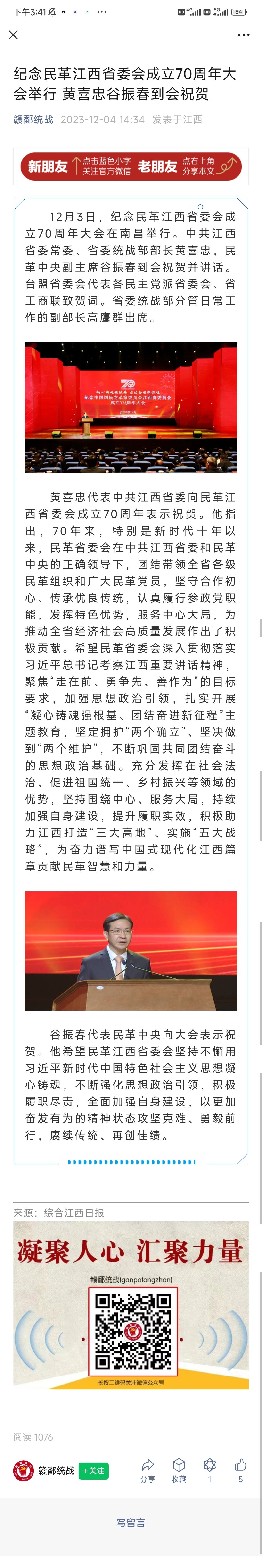 【赣鄱统战】纪念民革江西省委会成立70周年大会举行 黄喜忠谷振春到会祝贺