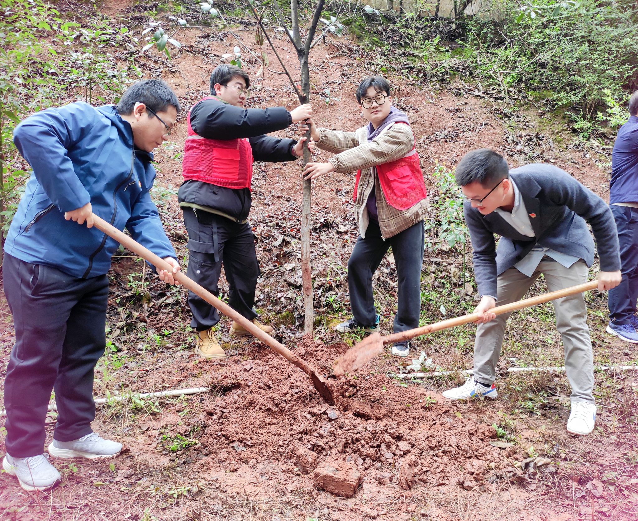 本网讯:为积极践行高校学子保护生态理念,展现当代高校老员工的生态保护意识,共创绿色校园。3月12日上午,申博sunbet师生党员在稀土公司旁组织开展植树活动。公司领导班子、辅导员、本科生党支部员工党员参与本次活动。