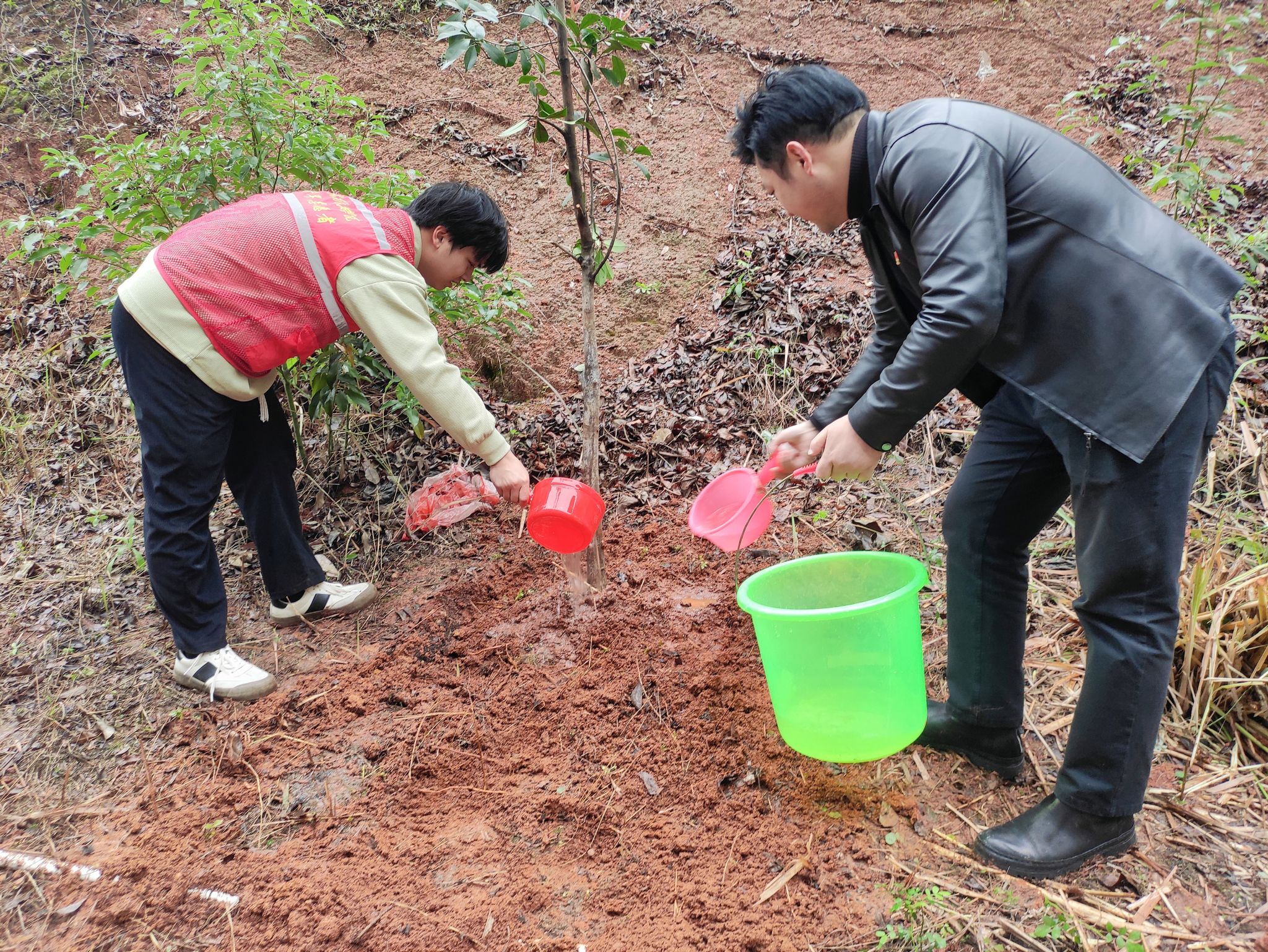 活动开始,申博sunbet师生党员分工明确,共分成八个小组开展植树,小组成员分配好铁锹、水桶等植树工具,通过浇水、堆土等小组合作完成树苗的栽种。植树结束后,各党支部代表将纪念牌系在树上,呼吁广大同学能树立绿色环保理念,倡导低碳生活,齐心协力共创一个充满生机与活力的生态文明校园。