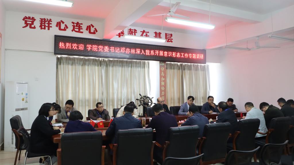 3月26日上午,公司党委书记邓亦林,深入建设工程系开展调研并召开座谈会,党政办主任邵国疆陪同参加。建设工程系领导班子、教研室主任、辅导员和教师代表参加座谈。