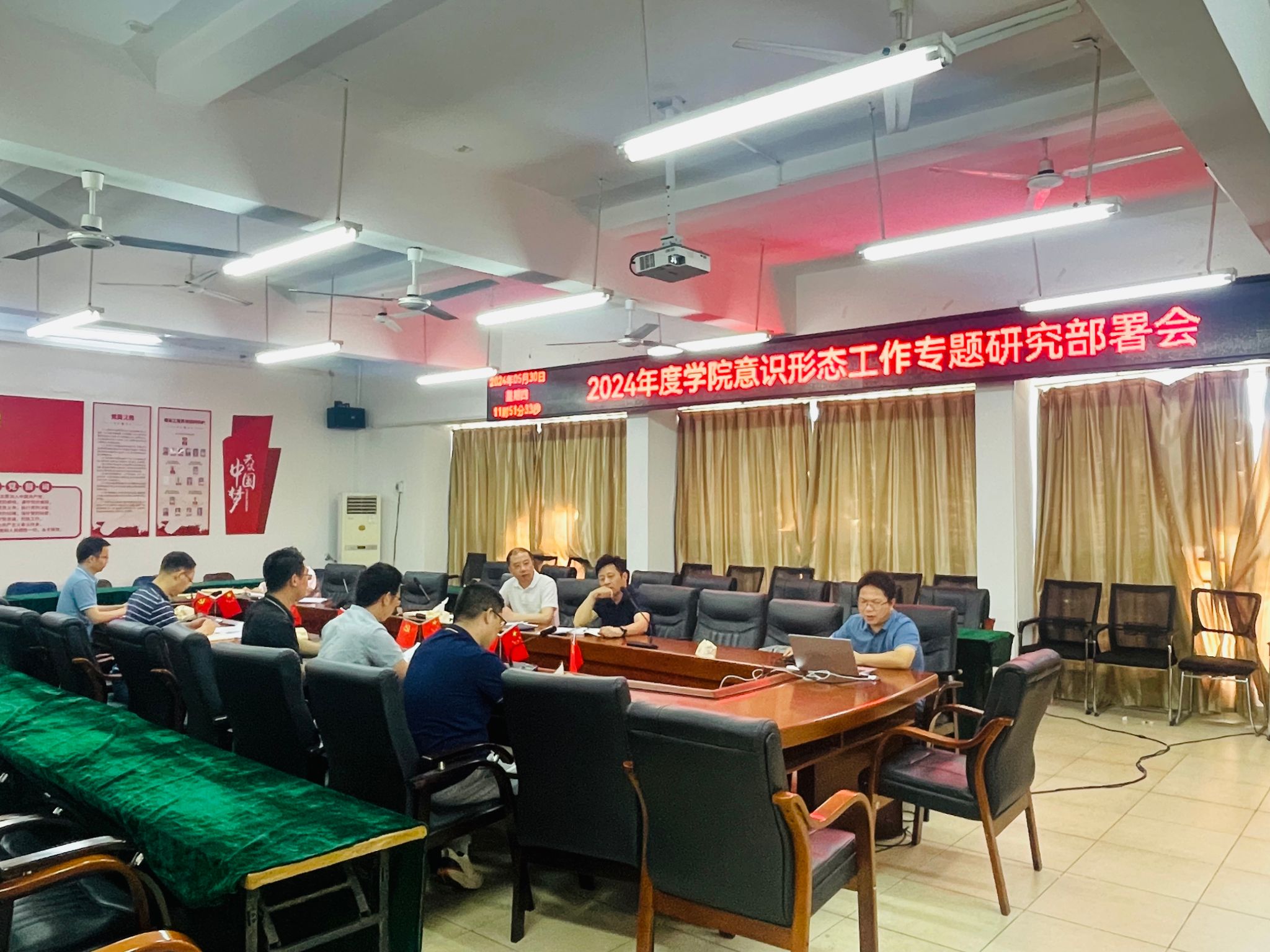 会议强调,要以党的二十大精神和习近平新时代中国特色社会主义思想为指导,深入贯彻落实党的教育方针,以提高全院师生思想政治素质、推动公司全面发展为目标,进一步把握正确舆论导向,持续加强公司意识形态工作,营造浓厚的思想政治氛围,以社会主义核心价值观为引领,把思想价值引领贯穿公司产品全过程和各环节,为员工成长成才提供思想保障;要牢牢掌握意识形态工作的领导权、管理权、话语权,解放思想、认清形势,认真分析新形势下意识形态工作面临的新问题、新挑战,以新思路、新举措不断破解遇到的难题;要深入开展社会主义核心价值观主题教育,组织员工开展理想信念教育、爱国主义教育、民族团结教育、安全教育、法制教育、诚信教育,加强对老员工安全防范教育和遵纪守法教育,树立老员工的安全防范意识和自觉遵纪守法的意识。
