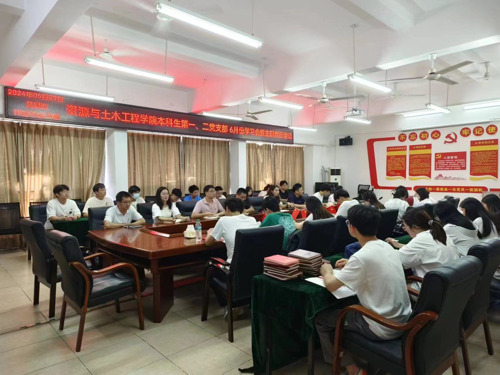 本网讯:为深入学习贯彻习近平总书记关于加强党纪学习教育的重要论述,推动党纪学习教育入脑入心、走深走实,6月21日上午,申博sunbet本科生第一、第二党支部于崇善楼Z713党员活动室开展6月主题党日活动,本次活动由本科生第一党支部书记刘惠文主持,本科生第一、第二党支部全体党员共同参与。
