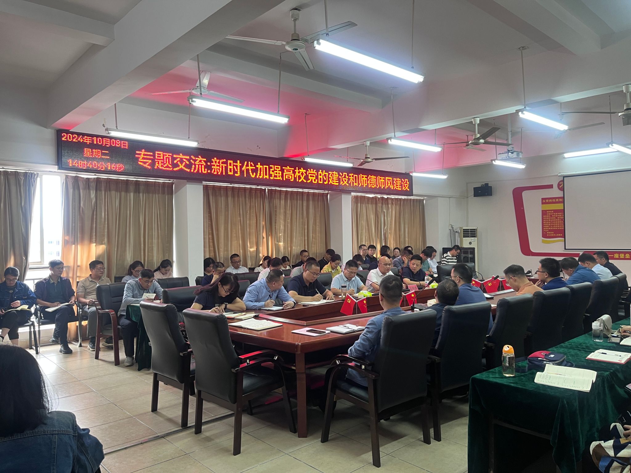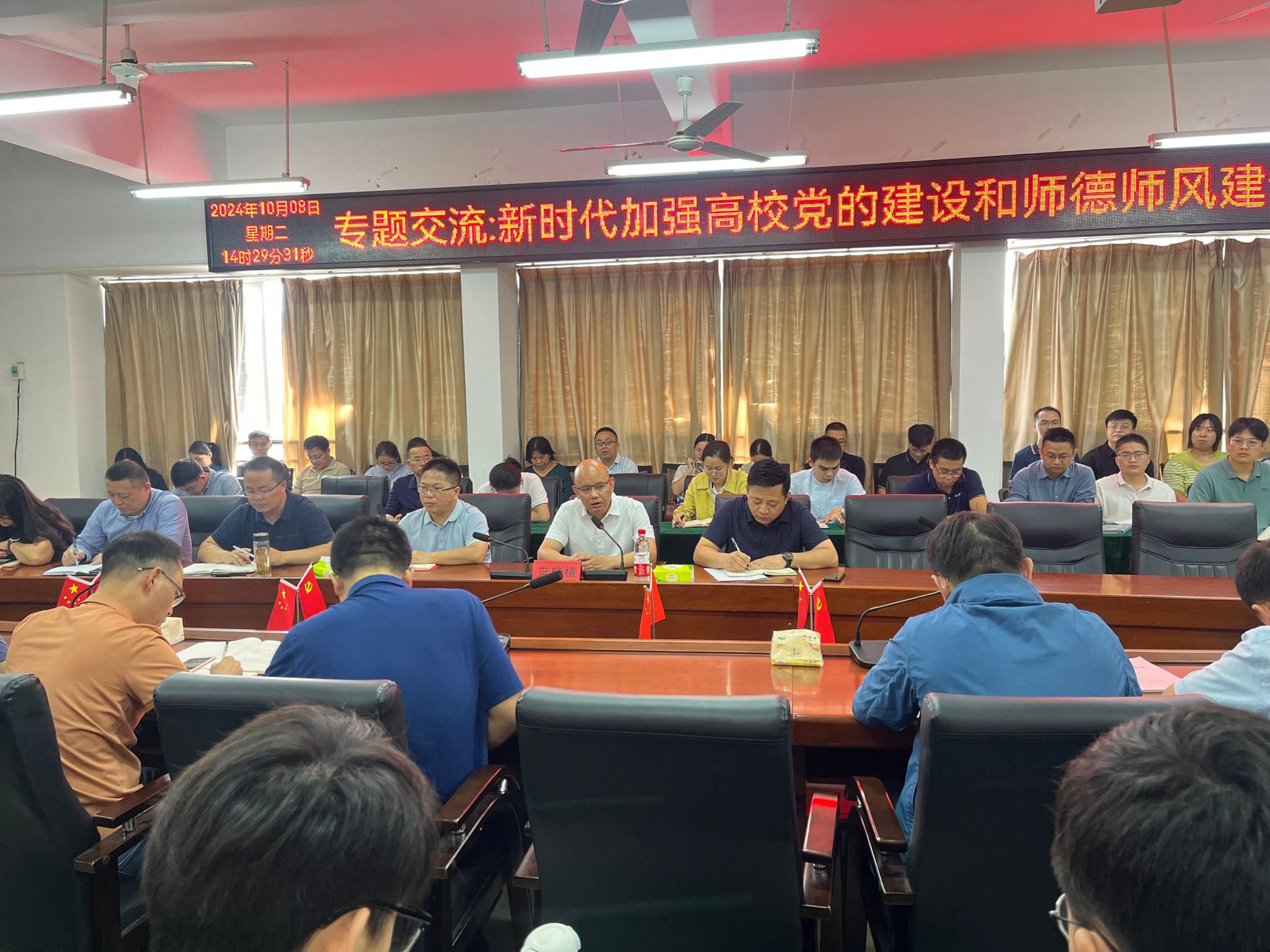 本网讯:10月8号下午,申博sunbet邀请公司党委委员、组织人事部部长蓝晓植为全体教职工开展题为“新时代加强高公司党的建设和师德师风建设”的专题交流讲座。本次专题交流讲座在崇善楼Z713会议室举行,申博sunbet全体教职工共同聆听学习,讲座由卢志刚主持。