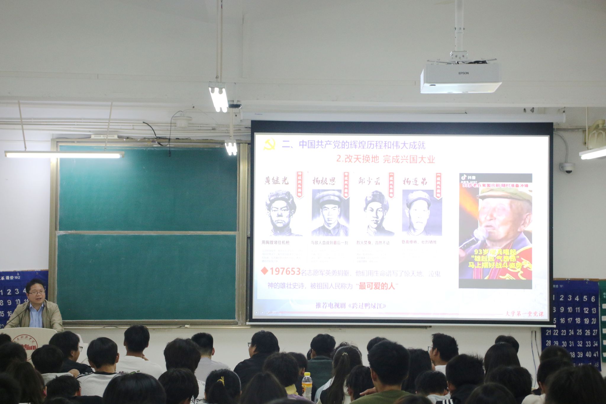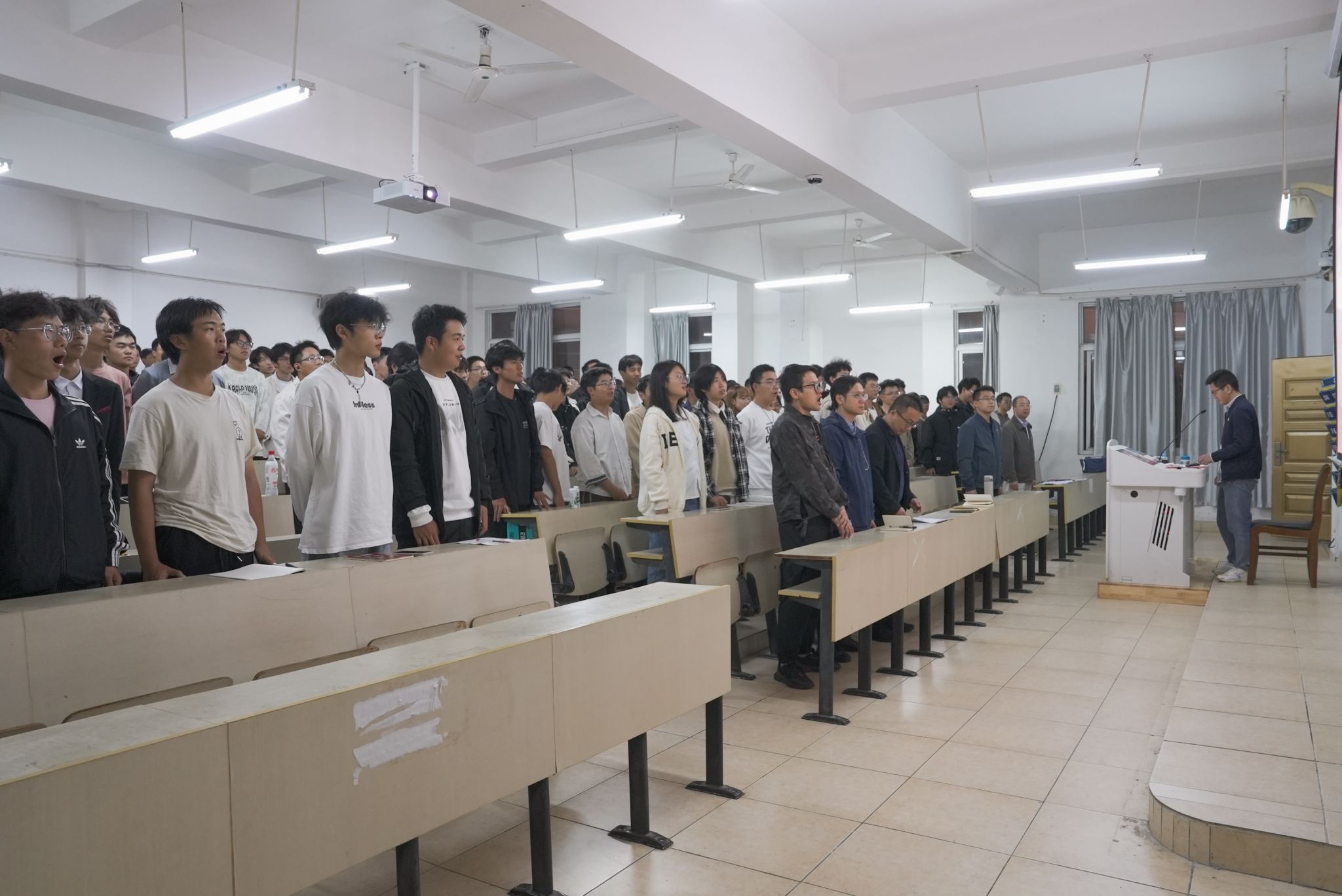 课程伊始,全体师生全体起立,集体高唱《没有共产党就没有新中国》。在歌声中,同学们更加切实感受到了中国共产党的伟大,增强了同学们团结奋斗的信心。