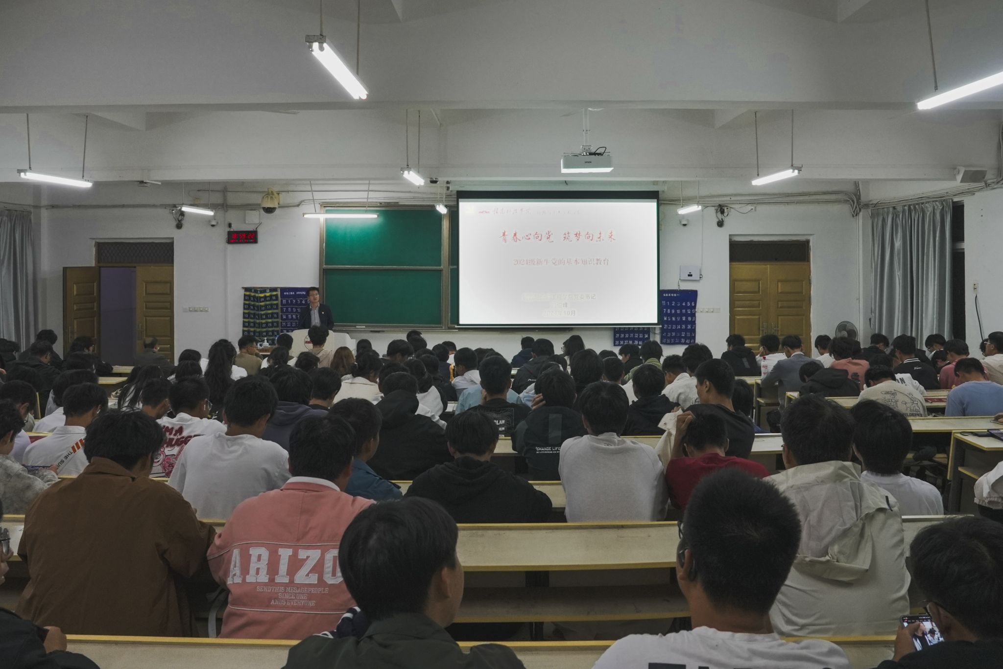刘俊峰和卢志刚的授课主题鲜明、内容丰富、重点突出,既有理论高度,又有实践深度,整场党课深深吸引着在场新生,同学们表现出极高的参与度,全神贯注地聆听党课讲解,并深刻感悟中国共产党以及共产党人的伟大。这次党课也更加坚定了同学们对党的热爱,对党组织的向往,以及在新时代新征程上为党和国家的事业奋斗的信心和决心。