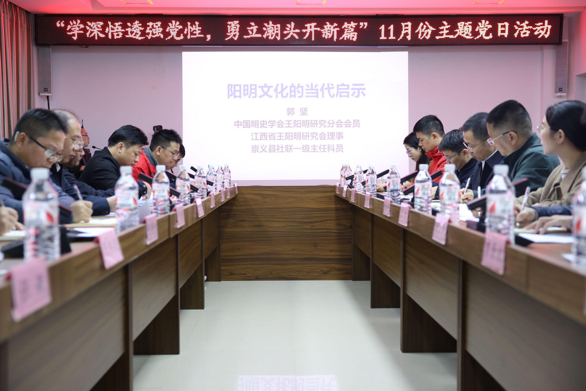 本网讯:11月23日,公司公司党委组织公司教工第一、第二党支部,本科生第一、第二党支部联合崇义县自然资源局第一、第二党支部共同举办“学深悟透强党性,勇立潮头开新篇”11月份主题党日活动。本次主题党日活动前往“国家生态文明建设示范县”崇义县,围绕“党的二十届三中全会精神”“中华优秀传统文化”“习近平生态文明思想”“党员党性锻炼”“全省教育大会精神”五个方面开展学习,创新党日活动形式和载体,通过现场参观教学、微讲座、集中理论学习、校企合作等形式,借助丰富的文字资料、原籍图片、复原场景、文物陈列等载体,沉浸式感受生态文明发展成果和优秀传统文化的创新性发展,溯源中国共产党思想建军、政治建军的重要探索实践,打造新时代强党性、严纪律、勇创新的先进党组织。本次活动在崇义县阳明博物馆、赣南三整暨崇义革命历史陈列馆以及崇义规划建筑设计院会议室等地举行。申博sunbet教师党员、本科生党员,崇义县自然资源局第一、第二党支部党员、崇义规划建筑设计公司党员参加此次活动。