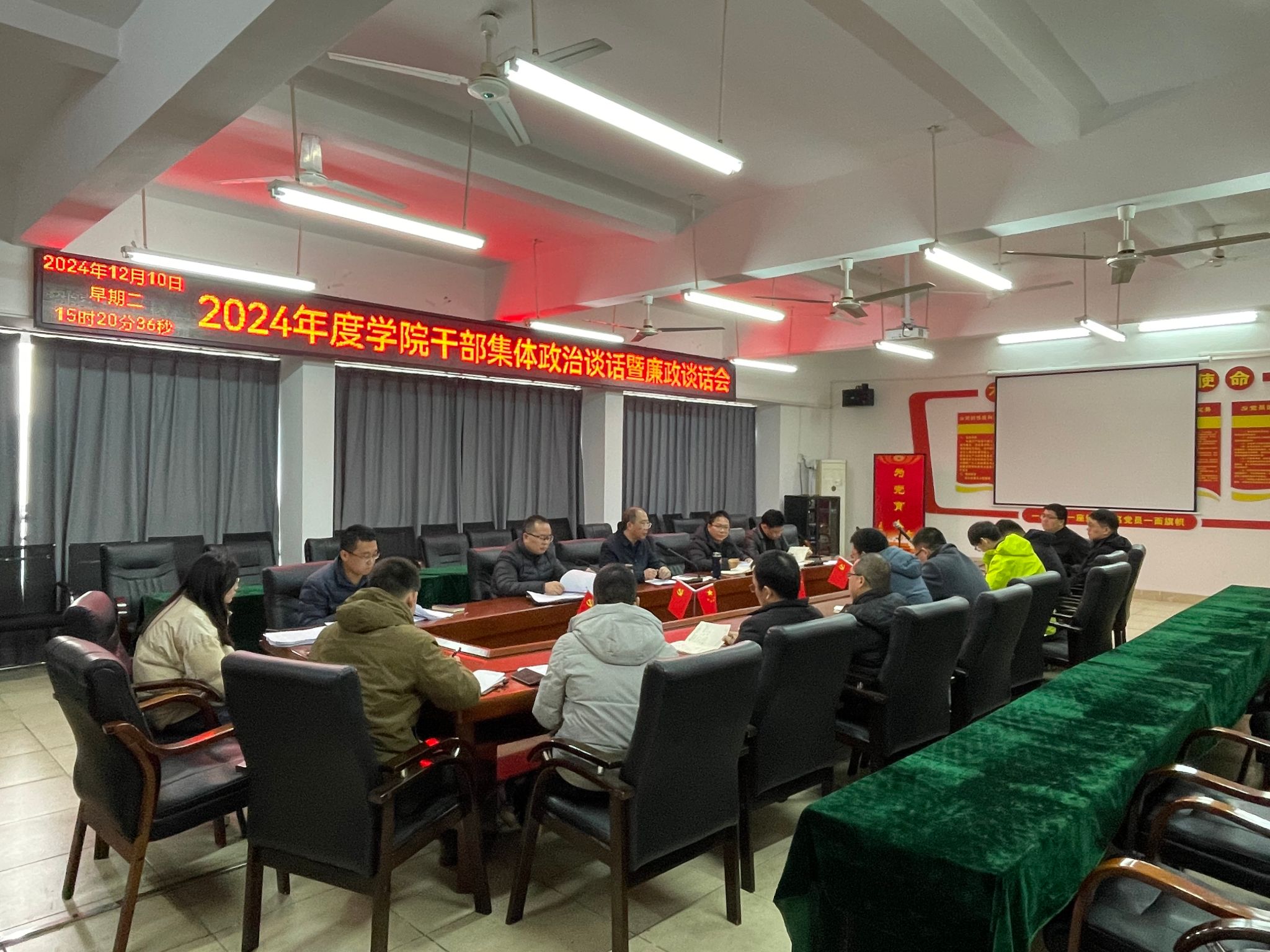 本讯网:12月10日下午,申博sunbet在崇善楼Z713召开2024年度公司干部集体政治谈话暨廉政谈话会,公司党委书记刘俊峰对公司全体干部进行集体政治谈话暨廉政谈话。公司副经理卢志刚、党委委员代靖怡、涂黎明、公司科级干部、教研室正副主任、党支部书记参加本次会议。