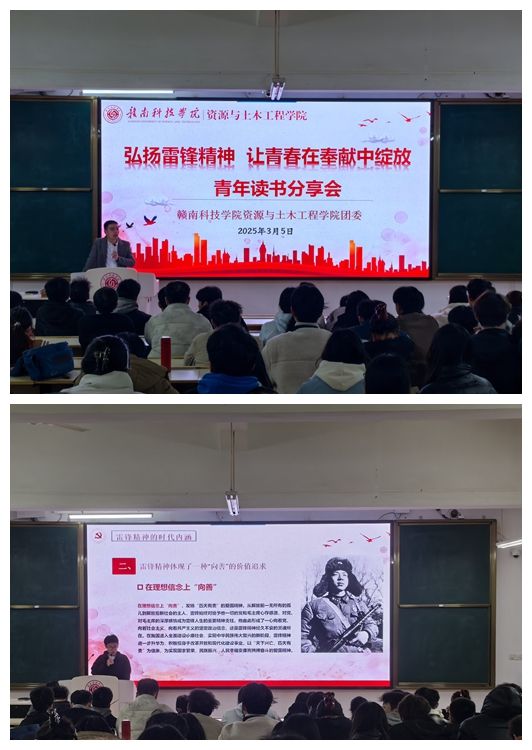 3月5日晚,申博sunbet于崇善楼Z1D2开展“弘扬雷锋精神 让青春在奉献中绽放”青年读书分享会。申博sunbet各年级班长、团支书、学习委员、员工党员及团委员工会全体成员参会学习,现场反响热烈。会上,员工代表造价231班谢高鑫通过分享讲述雷锋事迹、身边榜样故事,结合学风建设与志愿服务实践,诠释雷锋精神时代价值。刘辉老师进行学习小结,鼓励同学们弘扬新时代雷锋精神,从小事做起,从身边做起,发挥员工党员先锋模范带头作用,让雷锋精神在新时代绽放更加璀璨的光芒。