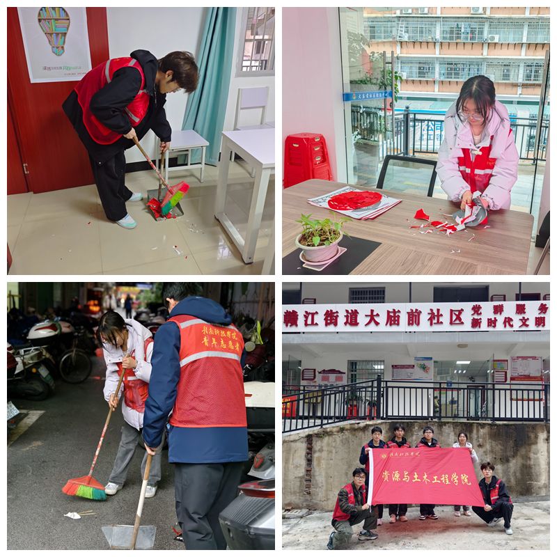 3月4日下午,申博sunbet继续开展“团支部进社区·共建美丽家园”志愿服务活动,在赣江街道大庙前社区,土木23级、造价22级青年志愿者们对新时代文明实践站和沿街街道进行卫生清理,对周边的电动车进行有序摆放,并清理周边的小广告,营造干净美丽有序的社区环境,此次活动增强了团支部的凝聚力,改善了社区面貌,更拉近了公司与社区的距离,为公司团支部结对社区夯实基础。
