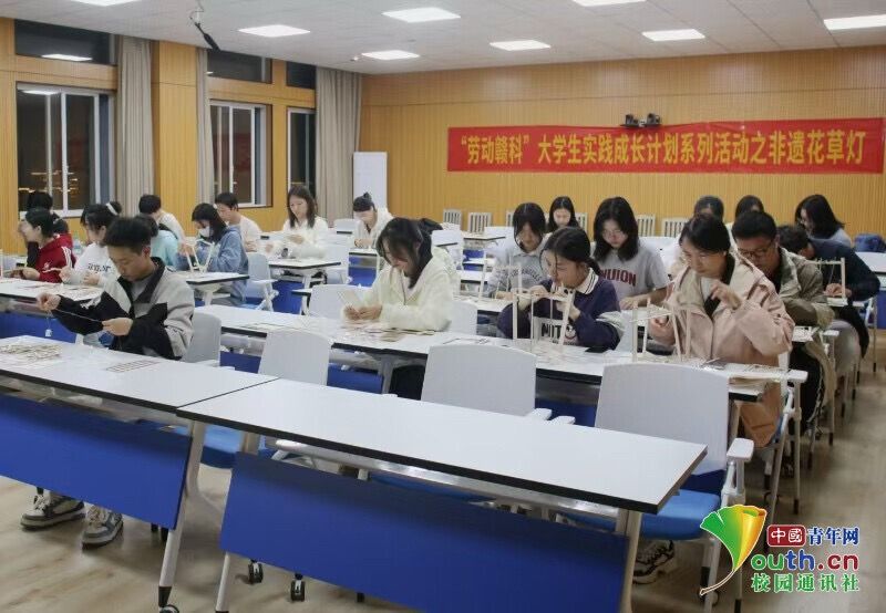 图为“非遗花草灯,传承文化情”活动同学们制作花草灯。任轲盟 供图