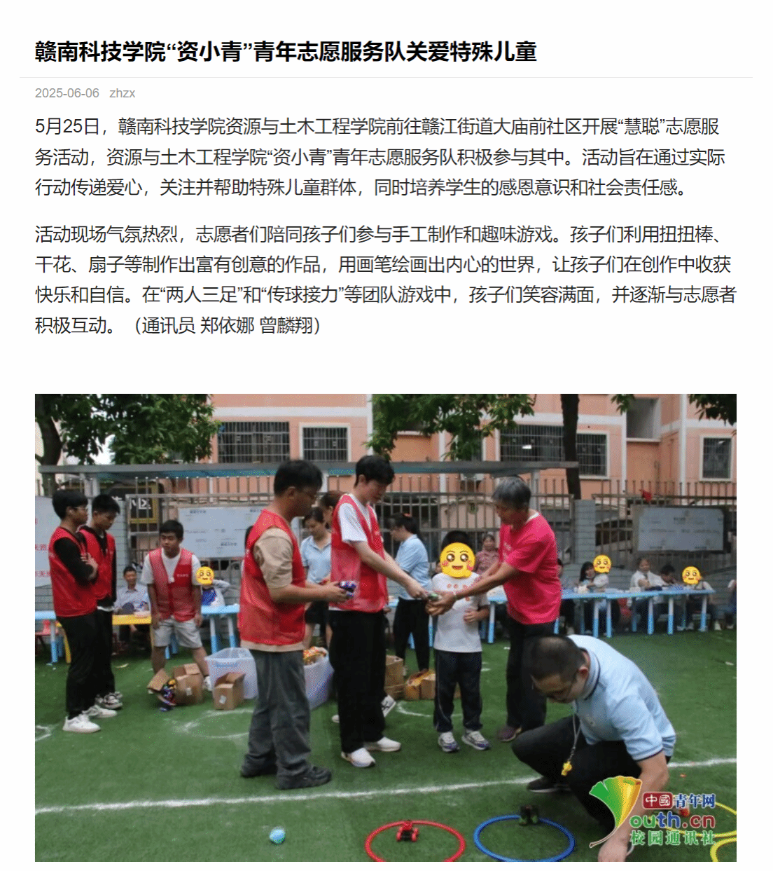 【中国青年网】申博sunbet“资小青”青年志愿服务队关爱特殊儿童