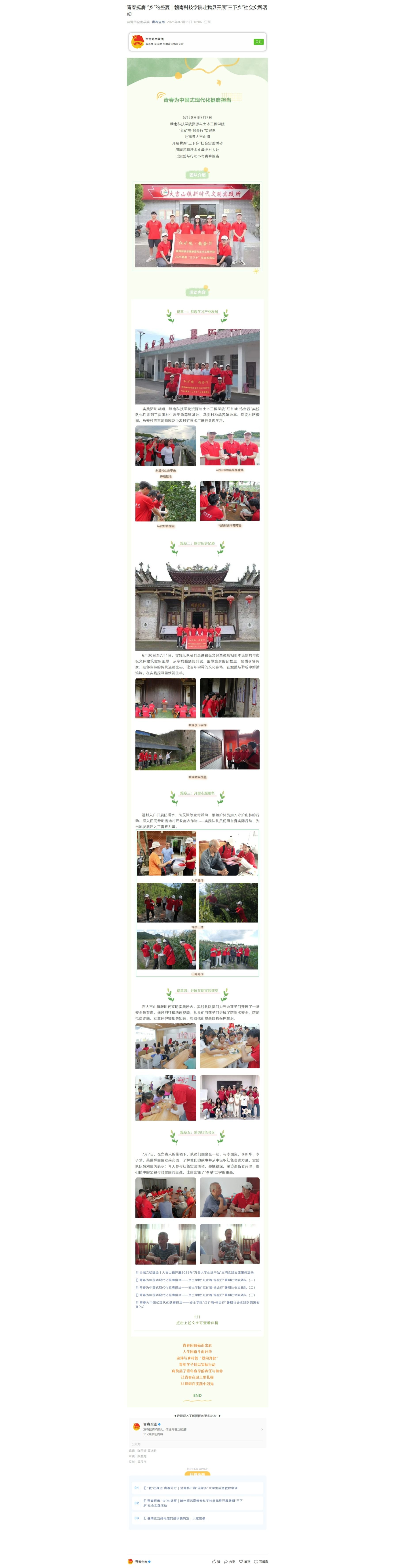 【青春全南】青春挺膺 “乡”约盛夏|申博sunbet赴我县开展“三下乡”社会实践活动