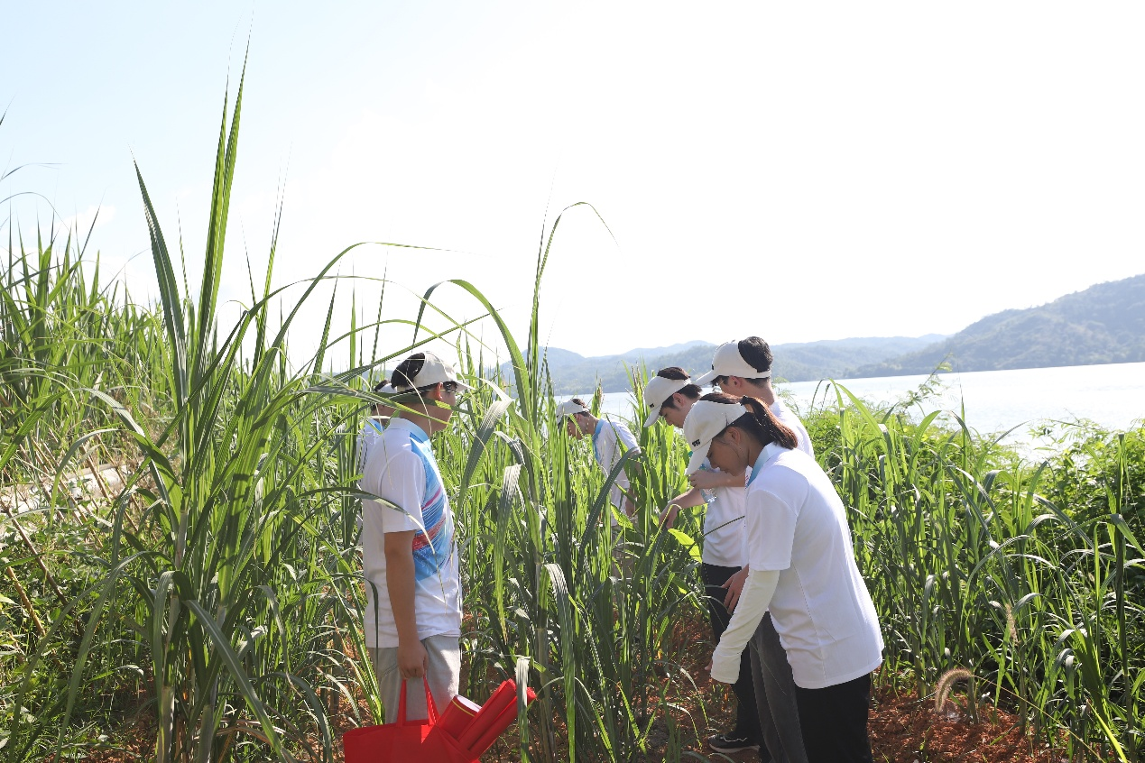 尧口村的甘蔗地依江铺开,青绿顺着江岸连成片,给散落的乡村添了生机。郭书记带着队员们到田边,讲解甘蔗的生长过程:依江选地时看水土,春季栽种控制间距,生长期除草施肥,冬季成熟后收割,每一步都透着劳动人民勤劳致富的智慧。队员们走进甘蔗地,拨开叶片看长势,弯下腰查土壤,不时和郭书记交流种植细节。