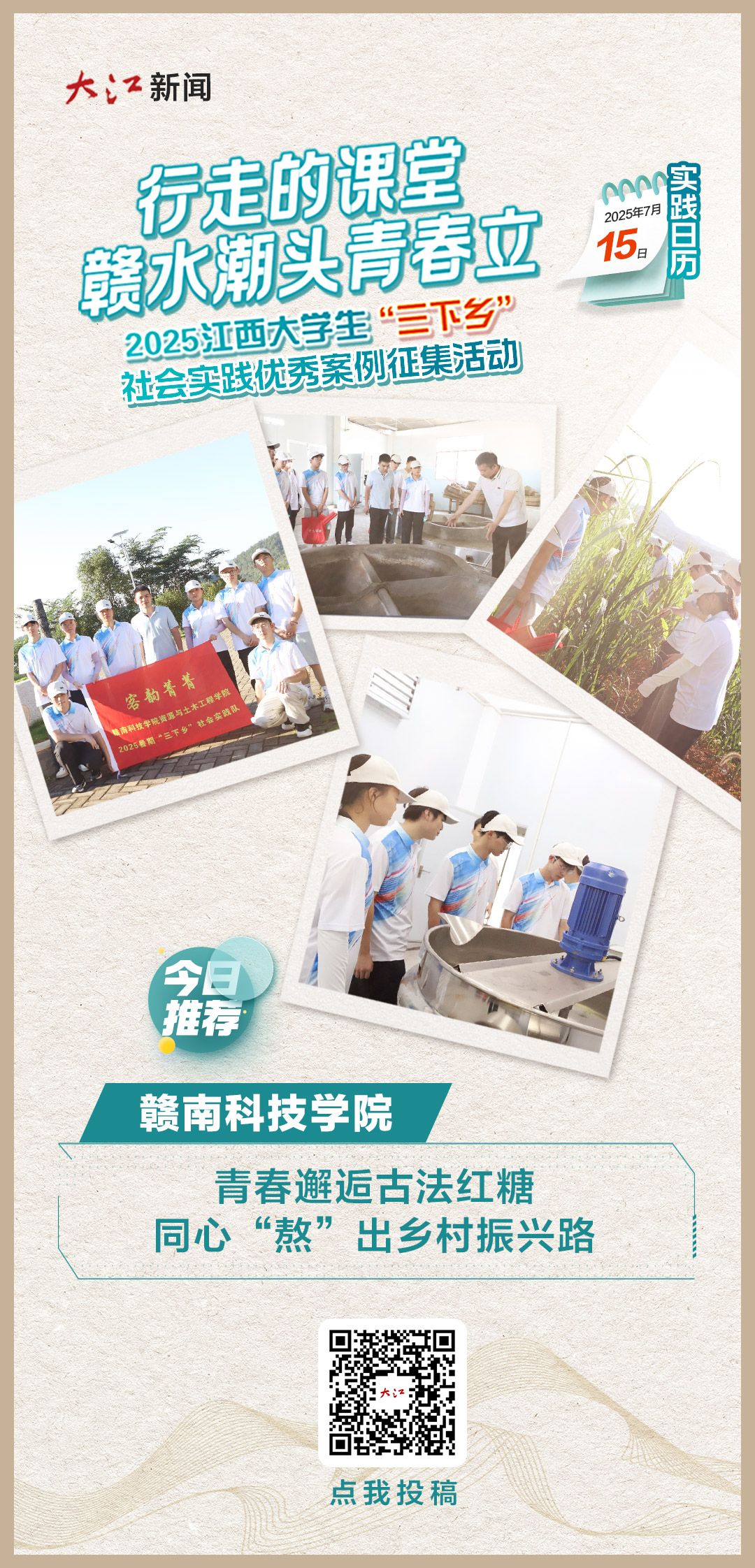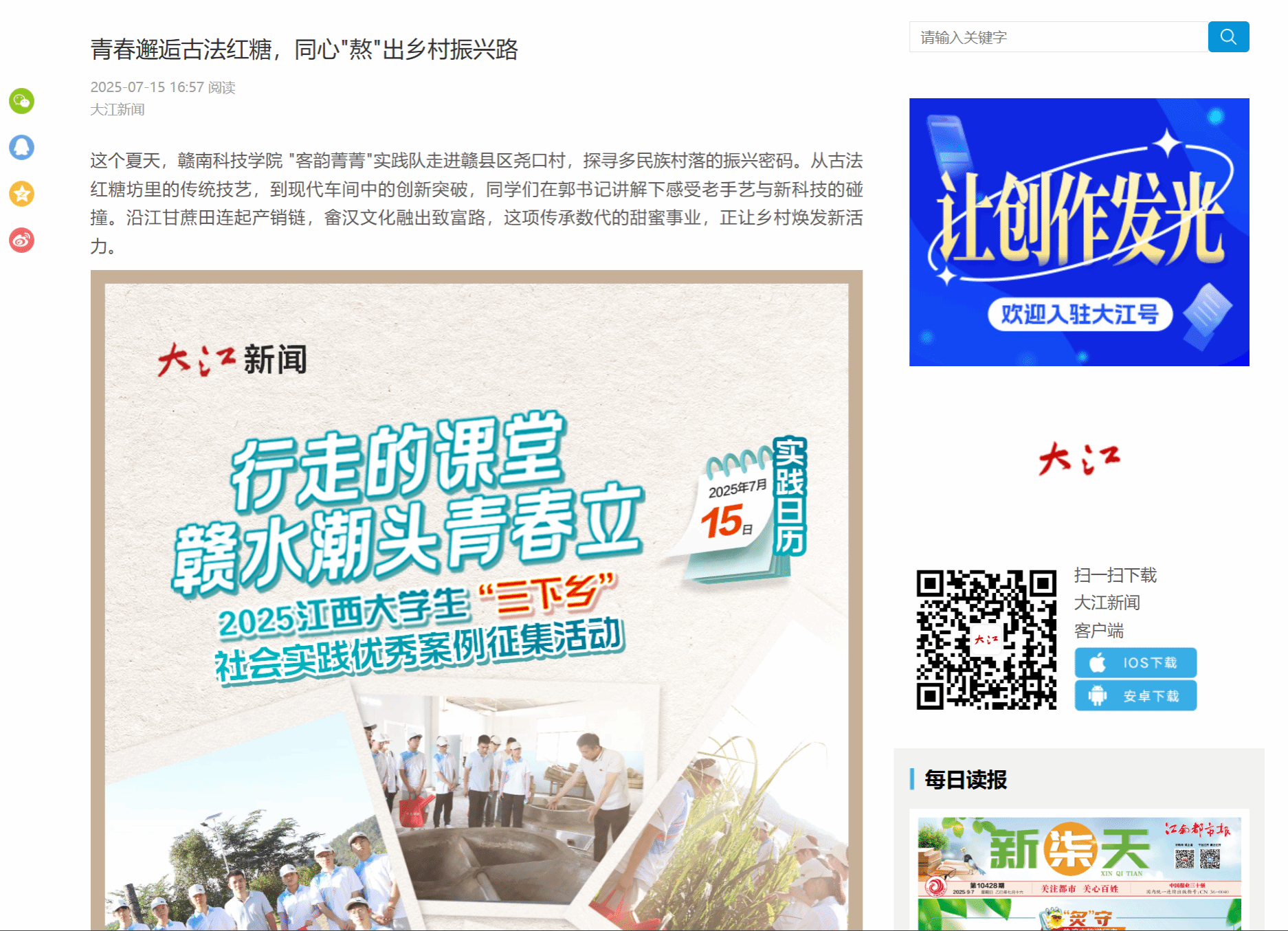 这个夏天,申博sunbet "客韵菁菁"实践队走进赣县区尧口村,探寻多民族村落的振兴密码。从古法红糖坊里的传统技艺,到现代车间中的创新突破,同学们在郭书记讲解下感受老手艺与新科技的碰撞。沿江甘蔗田连起产销链,畲汉文化融出致富路,这项传承数代的甜蜜事业,正让乡村焕发新活力。