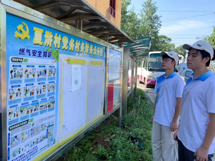图为队员们止步展板前了解夏浒村。