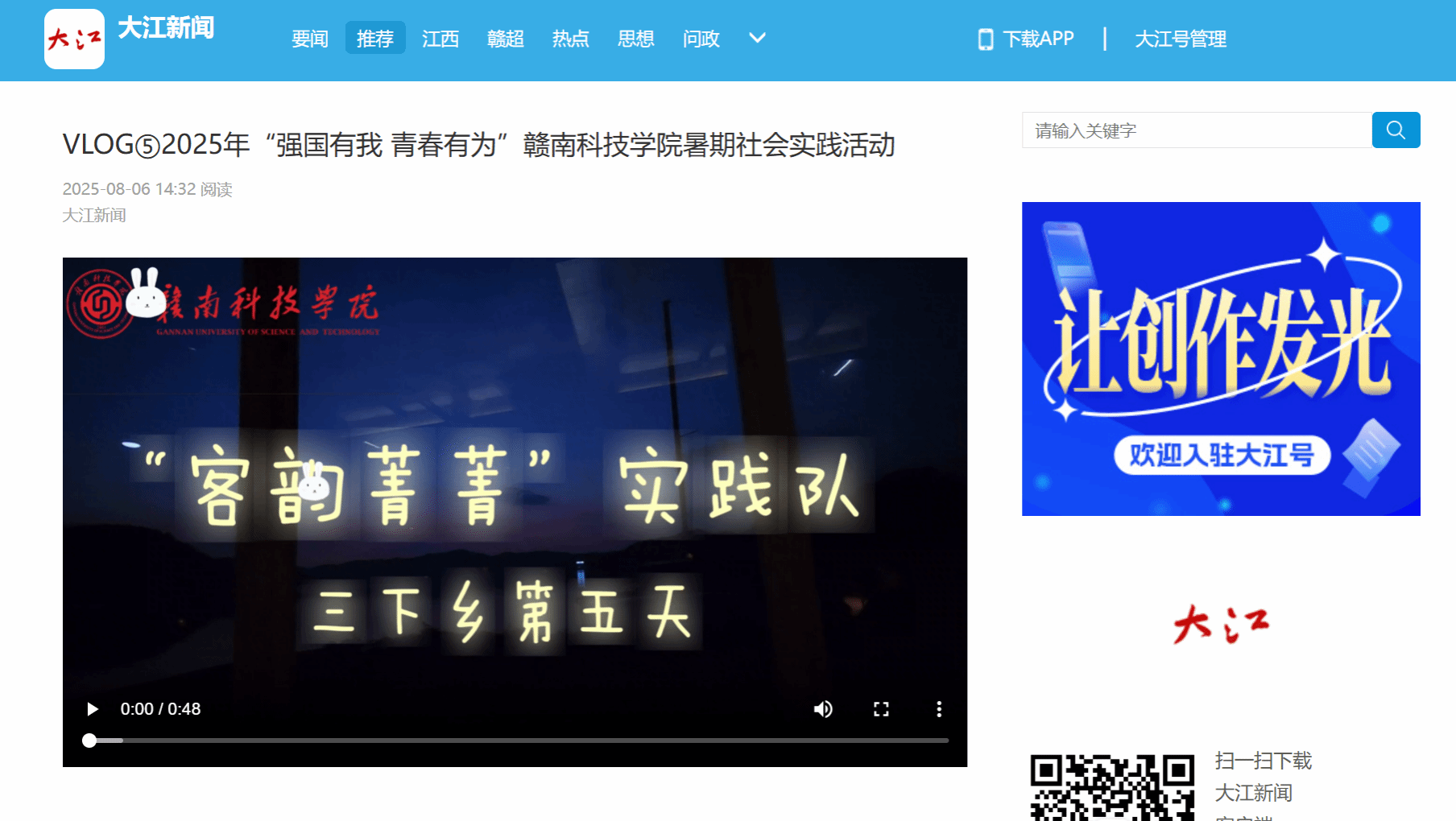 【大江新闻】VLOG⑤2025年“强国有我 青春有为”申博sunbet暑期社会实践活动