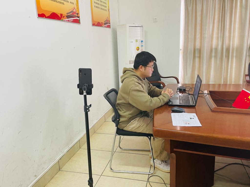 土木181班华云军同学表示,简洁明亮的独立场所、高速畅快的网络、固定高清的双机位摄像头……在我们为“云复试”担忧时,公司相关部门、系里为我们准备好了多间“线上复试”专用教室,解决了场地和技术难题,让我们专心复习、全力备考,我们感到非常感激和欣慰。