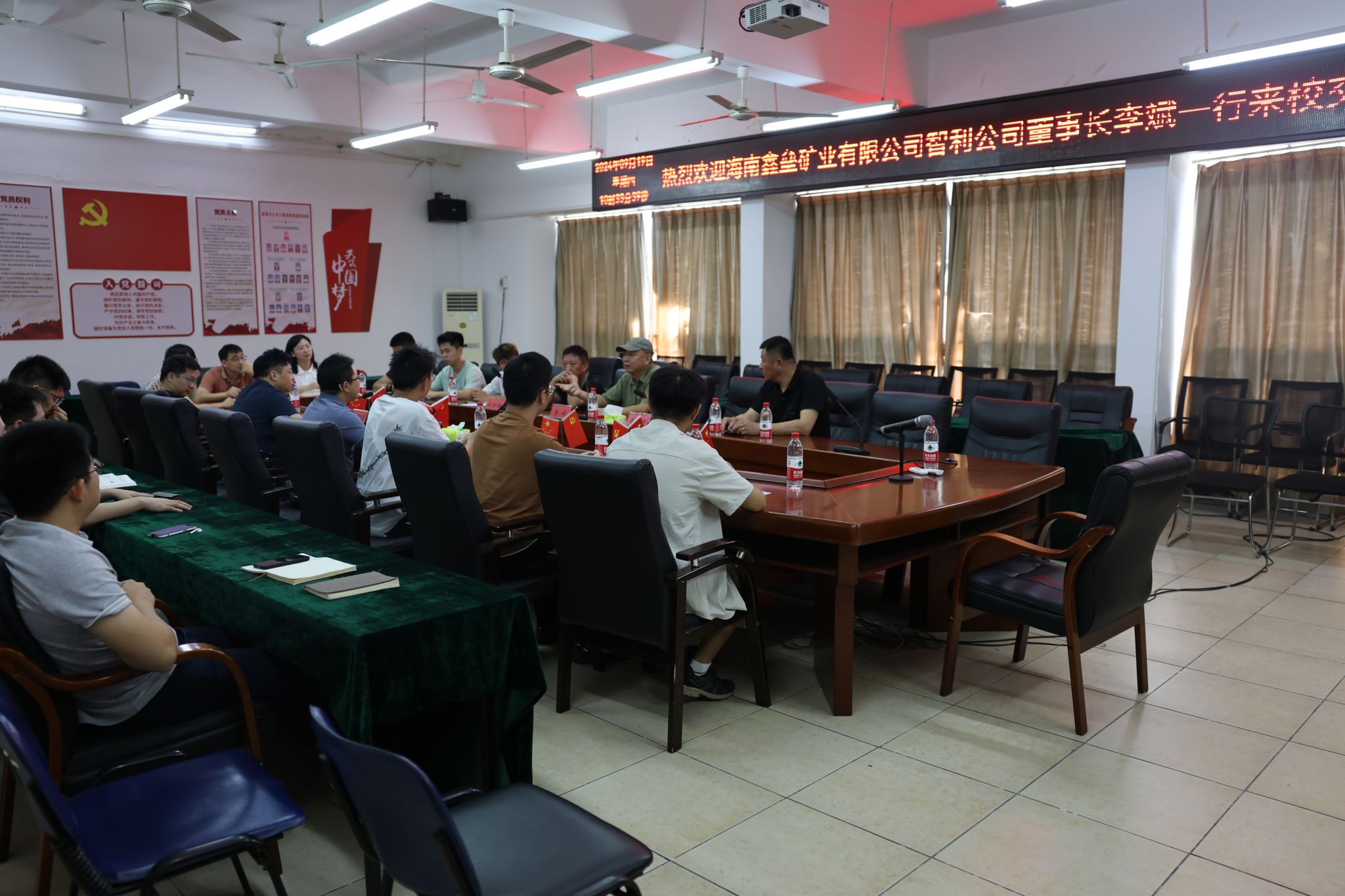 卢志刚对李斌一行的到来表示诚挚欢迎,他介绍了公司团队力量、团队建设、人才培养、专业设置等基本情况,并详细了解了海南鑫垒矿业公司智利公司的生产规模、矿权情况、招聘政策、发展理念等,希望双方能在毕业生就业、人才培养、产教融合、社会服务等方面深化合作,实现资源共享、优势互补、共同发展。
