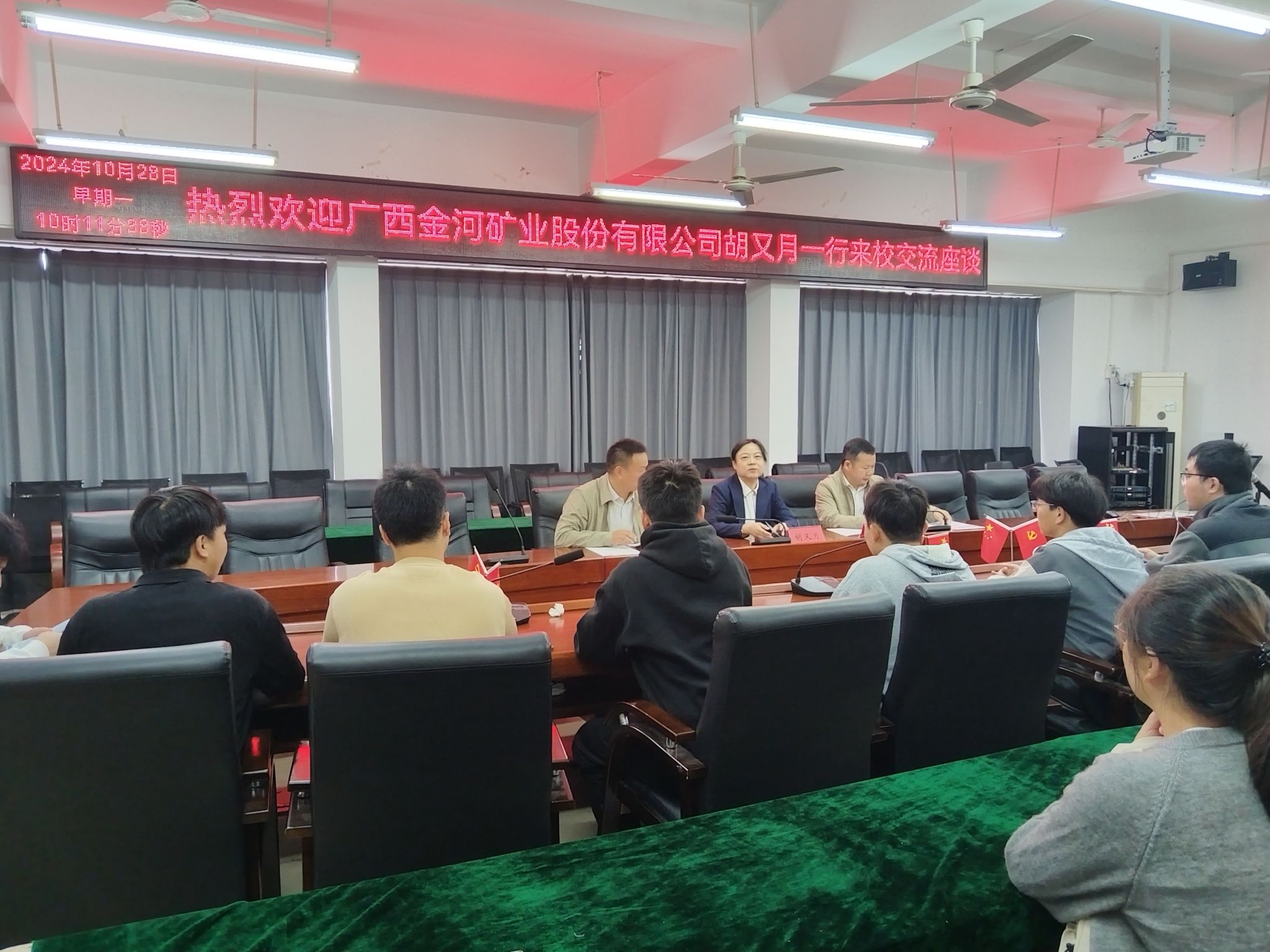 本网讯:10月28日上午,广西金河矿业股份有限公司胡文月一行到公司申博sunbet交流座谈,会议在崇善楼Z713会议室进行。申博sunbet副经理卢志刚,员工工作负责人涂黎明,相关教研室教师代表以及2021级采矿工程、矿物加工工程、会计等相关专业毕业生代表参加会议。