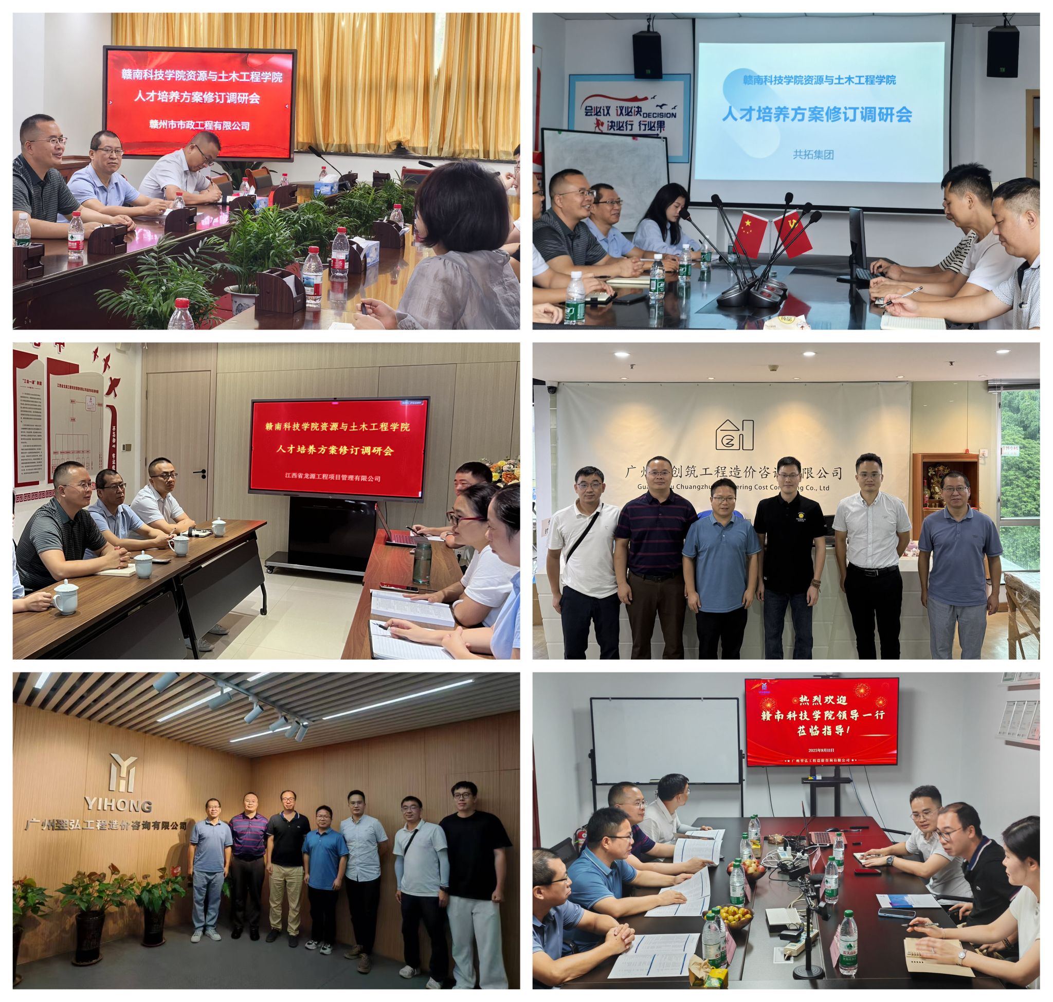 8月7日至14日,公司党委委员代靖怡率土木工程和工程造价教研室骨干教师一行,先后走进江西省龙源工程项目管理有限公司、共拓集团、赣州市市政工程有限公司、广州翌弘工程造价咨询有限公司、广州市创筑工程造价咨询有限公司访企拓岗,并围绕2025版工程造价与土木工程专业人才培养方案修订开展专项调研。公司教师与各家企业高管、总工程师及人力资源部门负责人围绕“新工科”背景下行业人才需求变化、岗位能力标准、课程体系建设、校企协同育人模式等议题进行了深入交流。企业代表结合近年来在BIM技术应用、装配式建筑、全过程工程咨询、绿色建造等前沿领域的项目实践,对现行培养方案的课程设置、实践教学比重及员工综合素质提升提出了建议性修订意见,并希望公司进一步强化员工的数字化能力与跨专业协作能力。