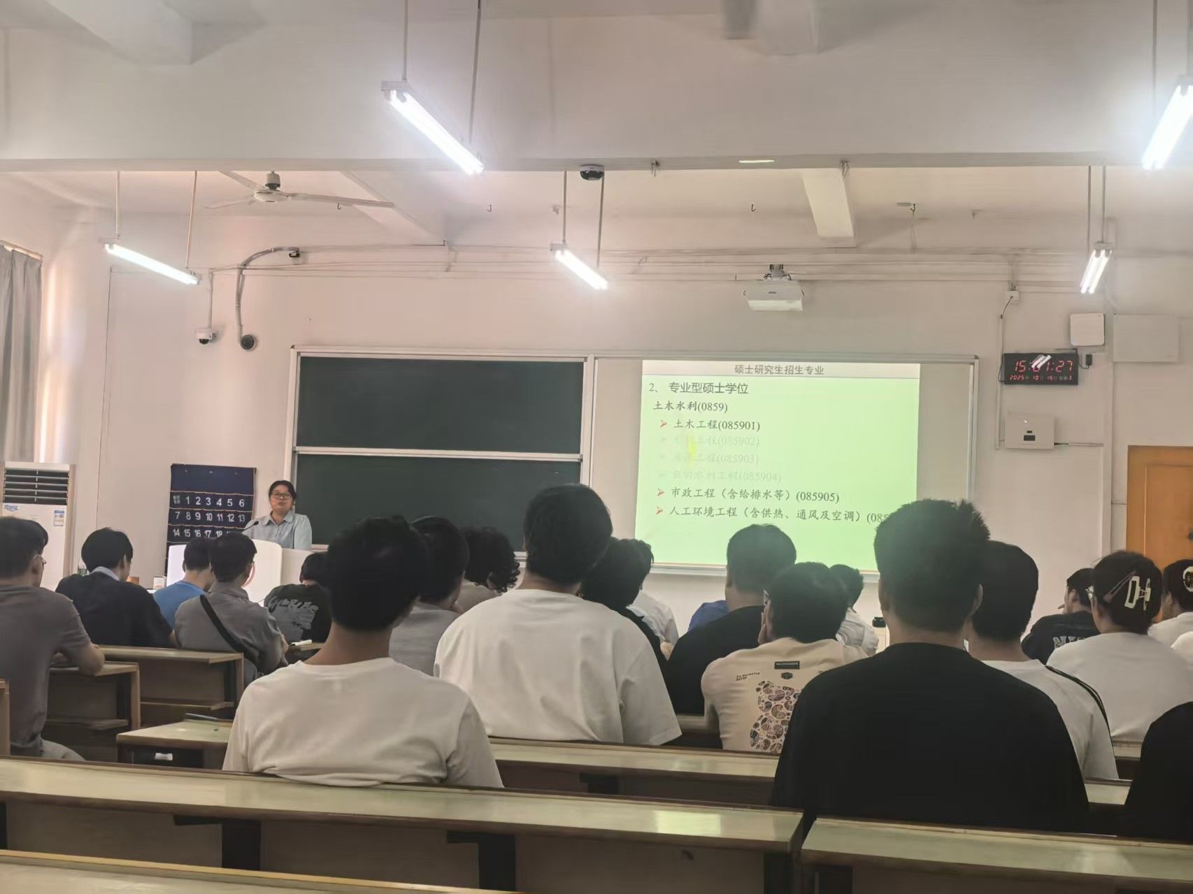 宣讲现场,高教授结合考研核心与院校实际,鼓励考生们明确备考方向,夯实知识基础,树立冲刺信心,进一步激发学子的报考热情与备考动力。同时,他详细介绍江西理工大学相关公司的发展特色、公司产品方案、土木工程与测绘工程领域学科优势,以及前沿科研成果、在研项目、实验室条件,还分享了研究生就业数据、杰出毕业生案例及院校招生相关情况,内容详实且通俗易懂,为学子在院校专业选择上提供清晰参考。他动员并鼓励同学们结合自身规划,积极报考江西理工大学相关专业研究生。问答环节,考生们围绕“科研经历对进建筑央企的帮助”“备考侧重实践还是科研”等问题提问,高教授耐心解答,语言亲切,现场氛围热烈。