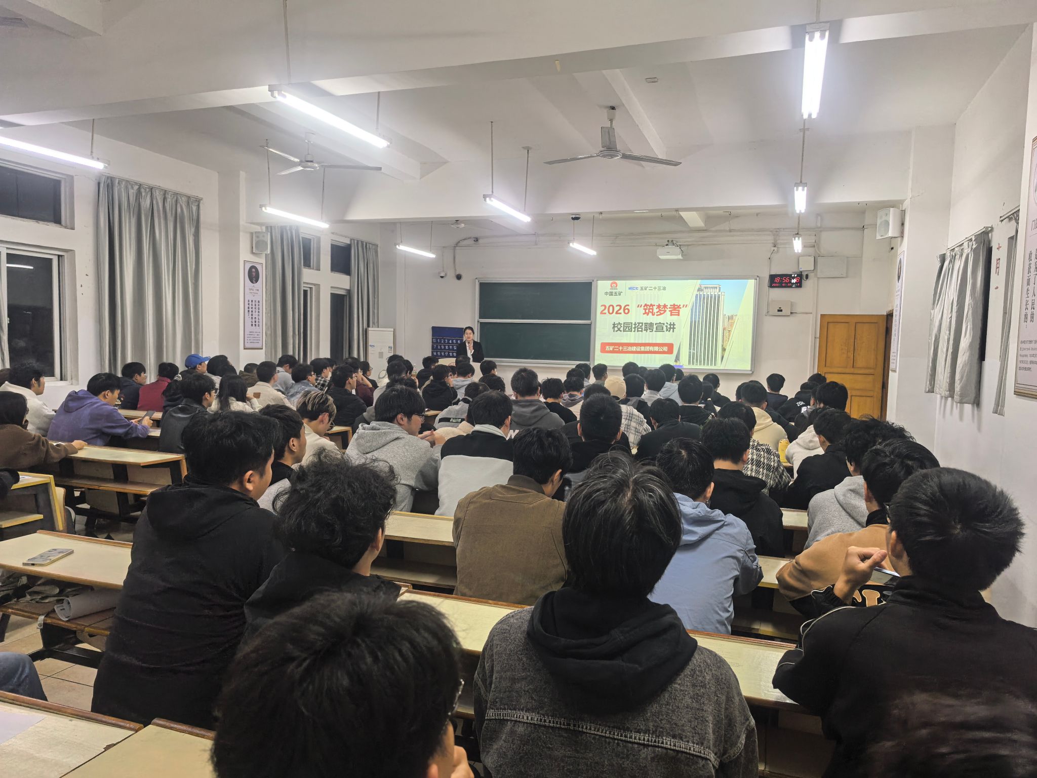 本网讯:为搭建企业与高校毕业生间的优质就业桥梁,助力学子精准对接优质岗位,10月22日晚,五矿二十三冶建设集团有限公司专场招聘会在崇善楼Z117顺利举行。此次招聘会吸引了100余名员工到场参与,现场气氛热烈。