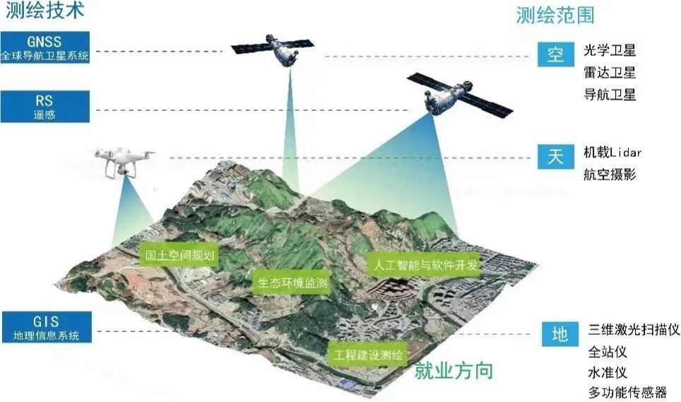 认识专业:测绘工程专业是一门对空间信息进行采集、处理、分析、表达与应用的综合专业。航天器及卫星轨道定轨、飞机定位导航、智能导弹精确打击、车载导航、海上渔船定位导航,地下空间贯通、无人潜航器海底航行,以及地图可视化虚拟化等,测绘工程专业都在提供必不可少的时空信息。现代测绘技术相比传统的测绘技术已有翻天覆地的变化,未来随着航空航天、光学遥感、微波遥感、物联网、5G、人工智能、自动驾驶、大数据、云计算、虚拟现实(VR)等技术的发展,测绘工程专业将迎来更大的发展空间。